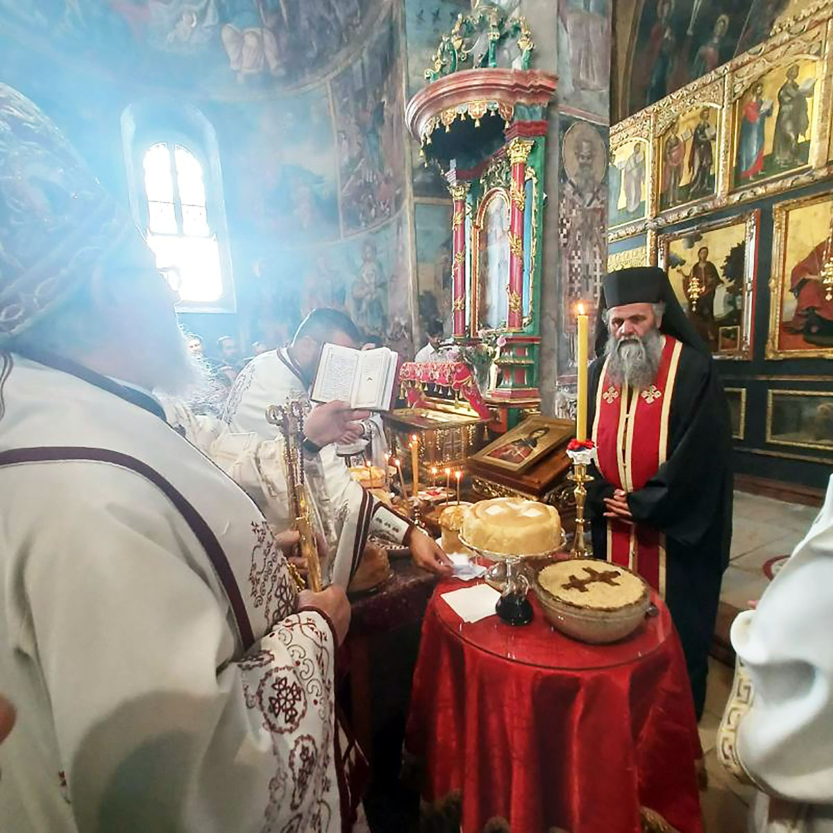 Његово Преосвештенство Епископ сремски г. Василије, началствовао је на светој архијерејској Литургији у древном манастирском храму, уз саслужење великог броја презвитера и ђакона, а уз молитвено учешће многобројног монаштва и верног народа. Благољепију евхаристијског сабрања допринело је милозвучно појање хора Преподобне мати Ангелине из Никшића, под уметничким руководством проф. Ане Бојић.