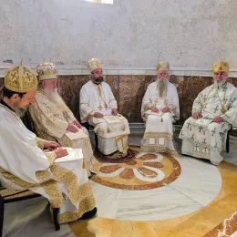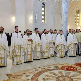 Светом Архијерејском Литургијом началствовао је Његово Високопреосвештенство Архиепископ сарајевско-сребренички и Митрополит дабробосански Г. Хризостом, а са њим су служили Архиепископ цетињски Митрополит црногорско-приморски Г. Јоаникије, Архиепископ мостарско-требињски и Митрополит захумско-херцеговачки и стонско-приморски Г. Димитрије, Архиепископ и Митрополит будимљанско-никшићки Г. Методије и Његово Преосвештенство Епископ буеносајрески и јужно-централноамерички и администратор Митрополије загребачко-љубљанске Г. Кирило.