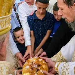 Освештан је и преломљен славски колач и благосиљано жито.