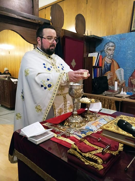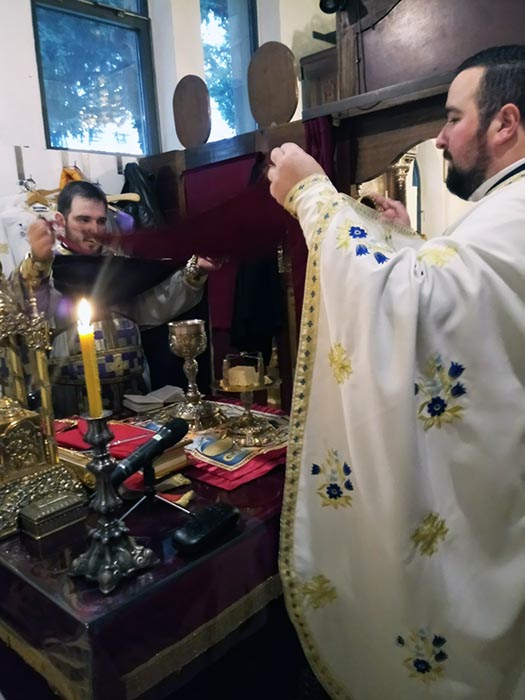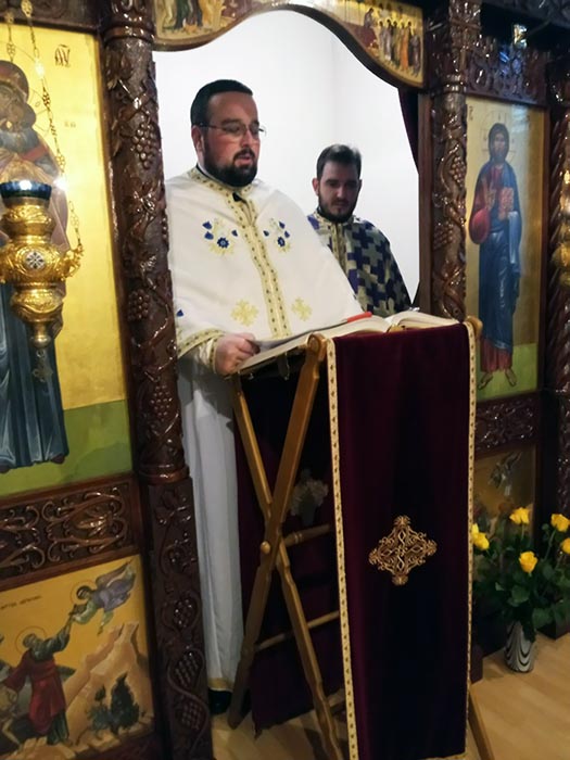 Литургијом је началствовао јерoмонах Сава Вукајловић, сабрат манастира Ђурђеви Ступови, коме је саслуживао јереј Александар Марковић, парох висбаденски.