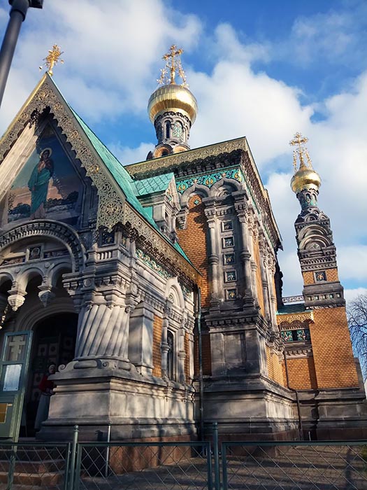 Град Дармштат је удаљен око 40 километара од Франкфурта. У њему су се родиле сестре Алис и Ела, познатије као последња руска царица, Света мученица Александра, и велика кнегиња, Света преподобномученица Јелисавета. Родитељи су им били велики војвода Лудвиг IV од Хесена и Рајне и британска принцеза Алиса. Преко своје мајке, биле су унуке британске краљице Викторије. Обје су прије удаје прешле из лутеранства у православље. Свети мученик цар Николај је подигао православни храм Свете Марије Магдалине у Дармштату како би приликом посјета царичиној фамилији одлазили на православно богослужење.