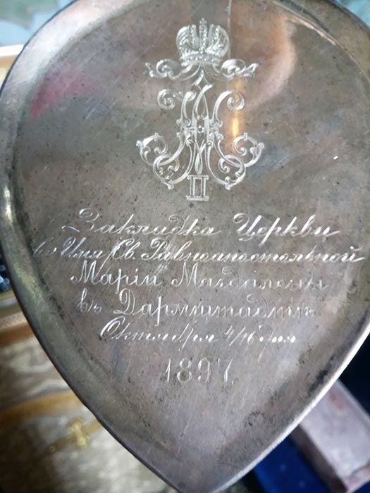 Црква је посвећена Светој Марији Магдалини, а подигао је, прије око 120 година, Свети мученик цар Николај II Романов као поклон супрузи Светој мученици царици Александри која је, иначе, принцеза хесенске владарске породице.