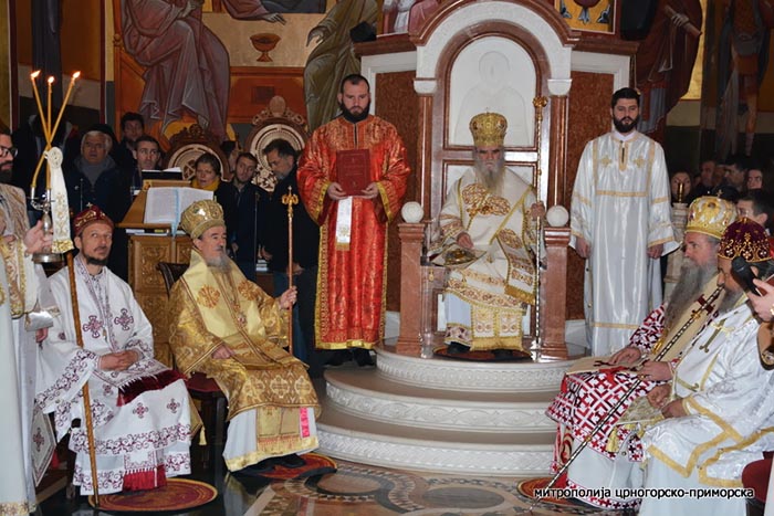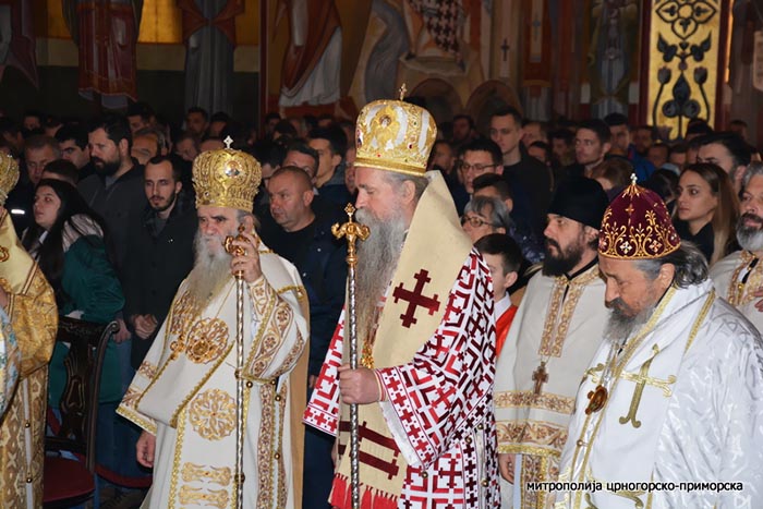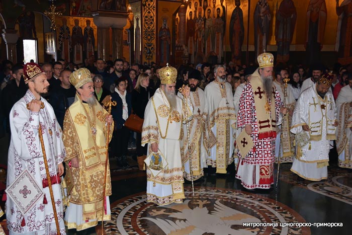 Његово високопреосвештенство Архиепископ цетињски, Митрополит црногорско-приморски г. Амфилохије, Преосвећена господа Епископи: будимљанско-никшићки Јоаникије, милешевски Атанасије, захумско-херцеговачки Димитрије и умировљени захумско-херцеговачки Атанасије, служили су данас у Недјељу Светих праотаца са свештенством Свету архијерејску литургију у Саборном храму Христовог Васкрсења у Подгорици уз молитвено учешће многобројног вјерног народа.