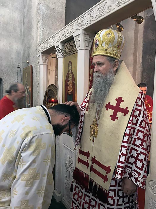 „Рукоположење је велики догађај за Цркву Божју, као што је у Цркви све узвишено, али је, посебно, узвишено примање свештеничког чина. Ђаконска служба је, по нашем утврђеном схватању, почетак свештеничке службе. Ако дубље погледамо и све припремне службе су залог свештеничке службе појац, ипођакон, а ђаконска служба је примање завјета и служба, која је везана директно за олтар. Ђакон је као анђео, анђео повезује небо и земљу, а ђакон повезује олтар, који је, заправо, небо и храм, који је земља. Храм се сматра за брод Цркве, тамо гдје стоји народ, све заједно то је црква. Толика је благодат свештеничког чина да се не може ријечима исказати зато што је много више све ту божанско, него ли људско. Људско је да се младић лијепо припреми, да се образује, мада и то не може без Божје милости, Божјег дејства, надахнућа, али то је његова дужност и оно што он треба да учини је да се лијепо спреми, да спреми своју душу и своје срце за примање божанске благодати, која га оспособљује за свештеничку службу. Све је то, свеукупно је то узвишено, нарочито због тога што силази благодат Пресветог Духа и укрепљује срце и ум новог свештенослужитеља, али не само на тај један моменат, него дјелује у његовом животу кроз цијелу његову службу. Укрепљује га, оснажује га и та се служба повјерава онима који су спремни да врше дјело Божје, јер та се благодат даје, не ради њега лично, него да би се она умножавала у народу и да би се тако ширила.