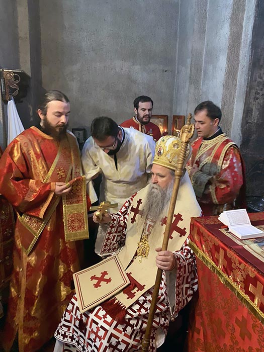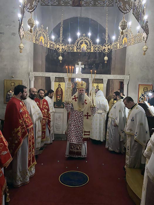 Његово Преосвештенство Епископ будимљанско-никшићки Г. Јоаникије служио је у суботу 28. децембра 2019, на празник Светог свештеномученика Елевтерија, Свету Архијерејску Литургију у манастиру Ђурђеви Ступови.