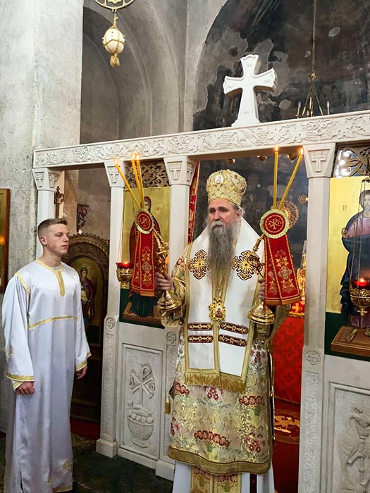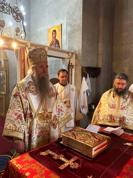 Његово Преосвештенство Епископ будимљанско-никшићки Г. Јоаникије служио је, у недјељу 25. по Духовима, на празник Светог свештеномученика Климента и Оданије Ваведења, 8. децембра 2019, Свету Архијерејску Литургију у манастиру Ђурђеви Ступови.