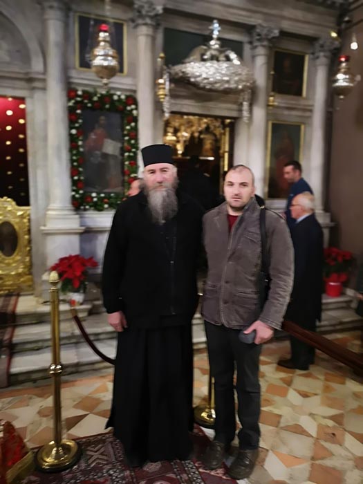 Приносећи молитве и благодарења за васколики род православни а посебно за мир рода нашег Светосавског у Црној Гори утврђујемо се у вјери Отаца наших и охрабрени и закриљени молитвама Св. Спиридона преносимо Вам благослове Овог Богоугодника. Такође поклонили смо се и помолили за напаћене душе наших часних предака који почивају у Плавој гробници на острву Видо у близини Крфа.