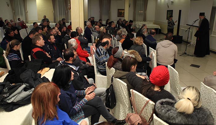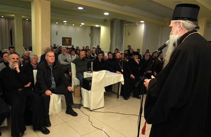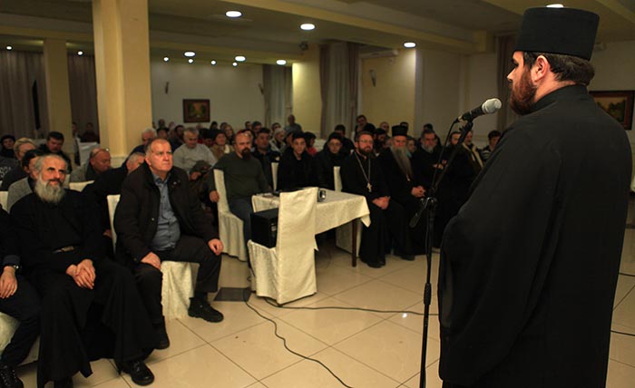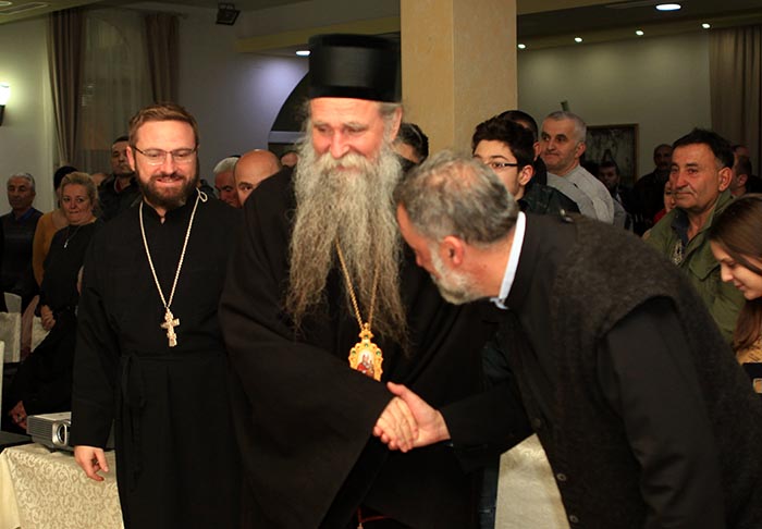 Сабрање је поздравио у име Црквене општине Никшић протојереј Остоја Кнежевић, старјешина никшићке Саборне цркве, напомињући да је повод за снимање овог документарног филма јубилеј служења Митрополита кијевског и све Украјине Г. Онуфрија.