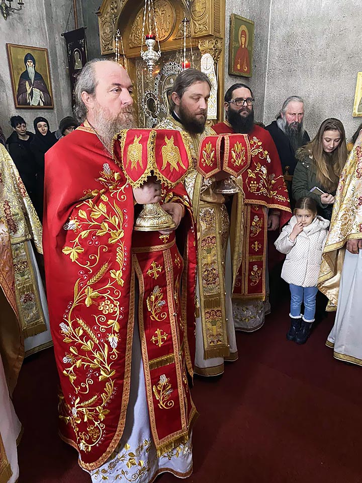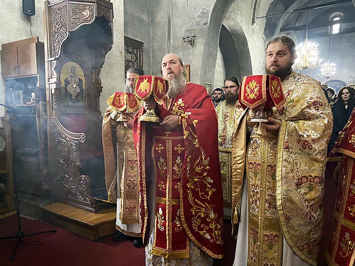 Свету Архијерејску Литургију, уз саслужење свештенства беранског намјесништва и монаштва Манастира, служио је Његово Преосвештенство Епископ будимљанско-никшићки и администратор Митрополије црногорско-приморске Г. Јоаникије.