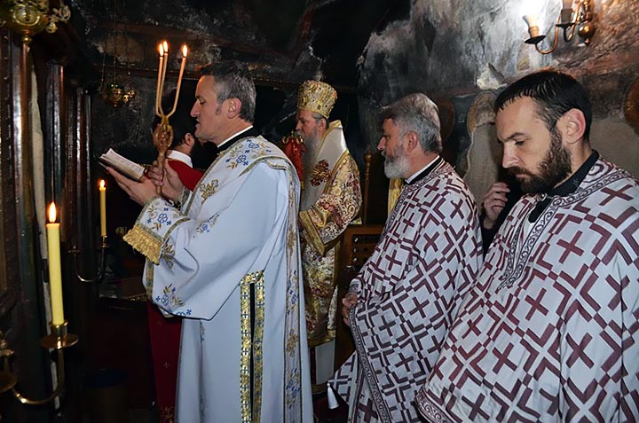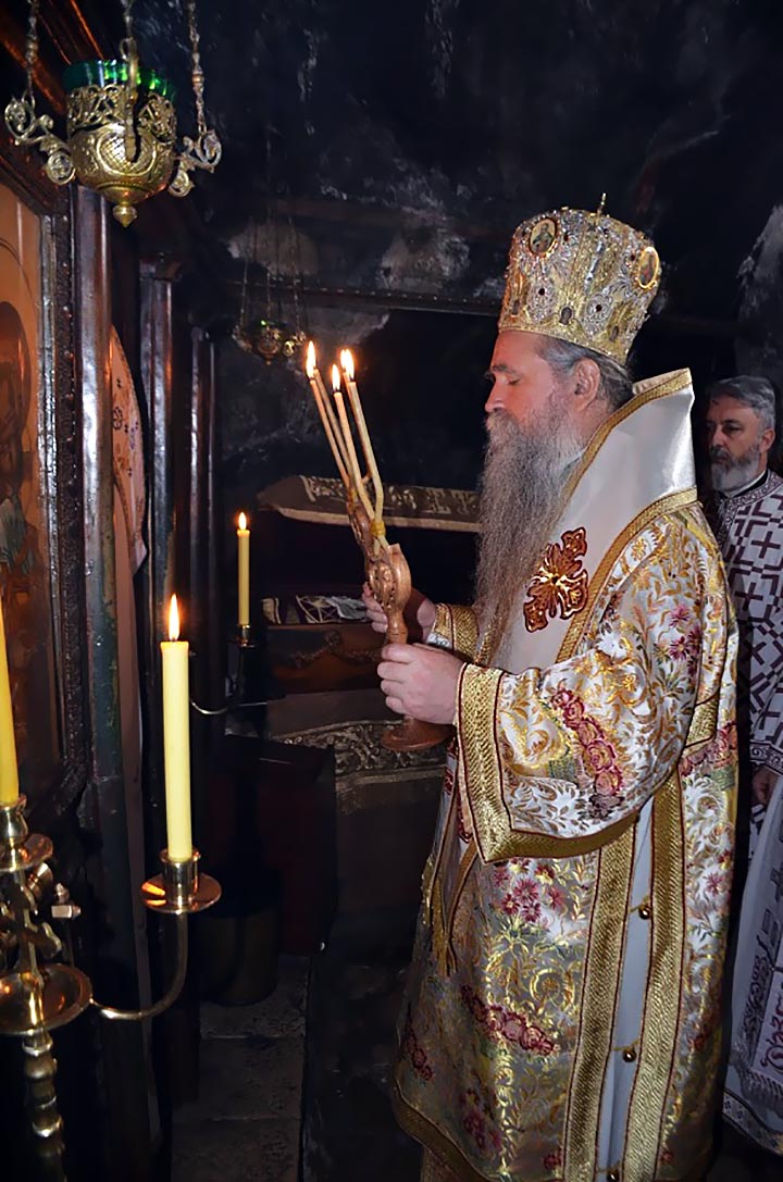 Администратор Митрополије црногорско-приморске, Преосвећени Епископ будимљанско-никшићки г. Јоаникије служио је јутрос, на празник Светог Спиридона Тримитунтскога Чудотворца са свештенством Свету службу Божију у црквици Ваведења Пресвете Богородице у Горњем манастиру Острогу.
