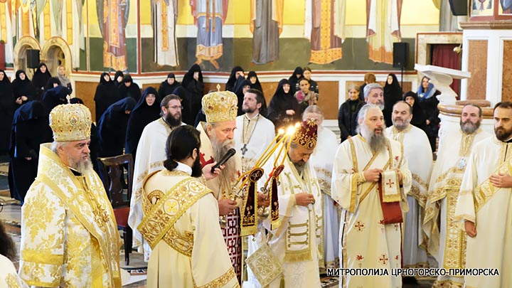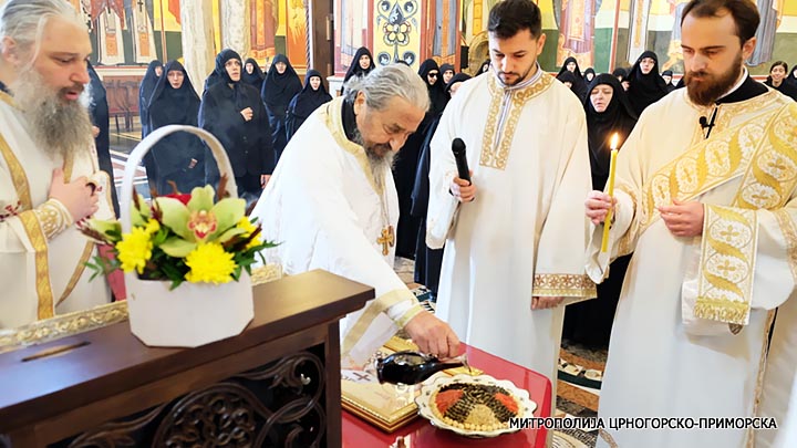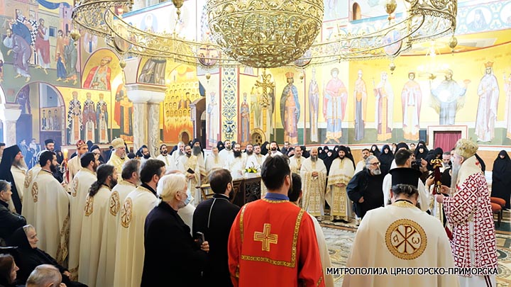 Овдје су данас само монаси и монахиње који су у овим условима могли да дођу. У свим манастирима и храмовима у Црној Гори данас се држе помени, па смо зато и рекли због ових мјера да људи који могу да дођу, а сви који не мкгу да врше помене по својим храмовима нашем Митрополиту. Али, треба видјети манастире како данас изгледају по Црној Гори, који су пропјевали. А треба се сјетити какви су били када је он дошао: већина од њих запуштени, без кровова, представљали су мерзност запустјенија. Он је све то очистио, обновио и уз помоћ монаха и монахиња све изнова саградио и уљепшао. И што је најважније, наше светиње су пропојале. Пропојала је душа Црне Горе. Он је био тај који нас је у ту пјесму привукао, који нас је научио тој пјесми. И ту пјесму не треба да заборавимо. То је пјесма вјере, молитве, пјесма заједничког и саборног славословља Богу, пјесма љубави Божјој, пјесма нашем заједништву.