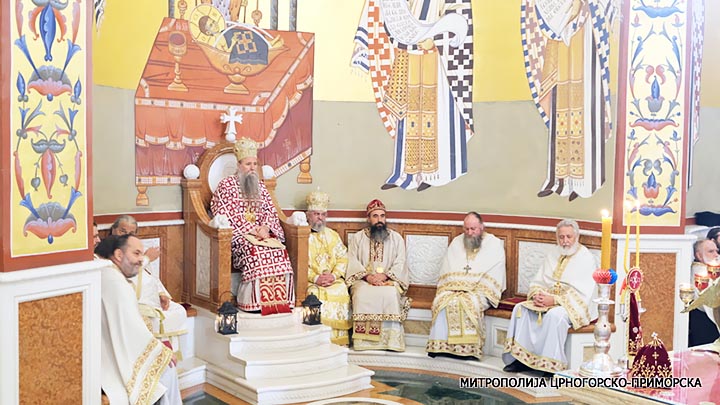 Сабрао нас је блаженопочивши Митрополит Амфилохије у овај недјељни дан, нас дан свога небеског покровитеља Амфилохија Иконијскога. Јесте овај сабор данас овдје прожет тугом, али је прожет и великом радошћу зато што имамо таквога свједока који је пред нама, који нас је водио, свједока Христовога, апостола Христовога који нас је сабирао у вријеме своје свете архијерејске службе овдје у Црној Гори. Он нас и данас сабира, и убудуће ће нас сабирати.