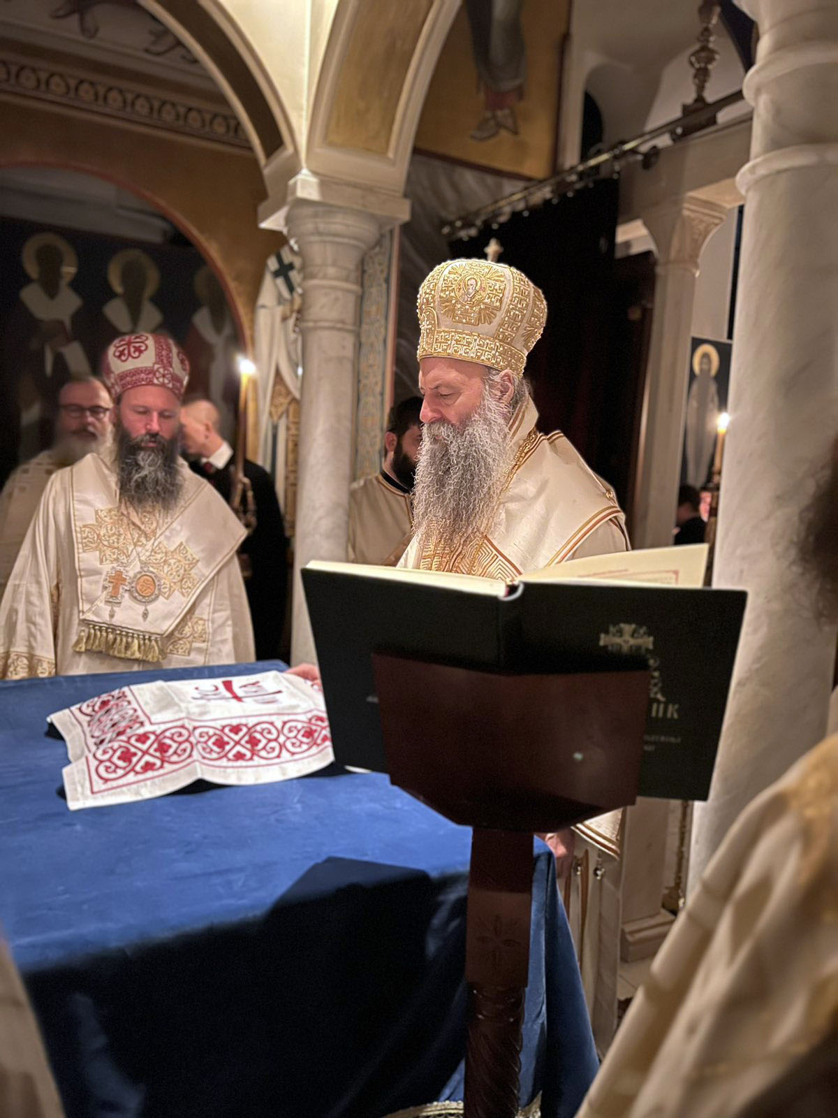 Његова Светост Патријарх српски г. Порфирије служио је у поноћ 2. децембра 2023. године, на празник Светог Порфирија Кавсокаливита, свету Литургију у параклису Светог Јована Богослова на Богословском факултету у Београду.