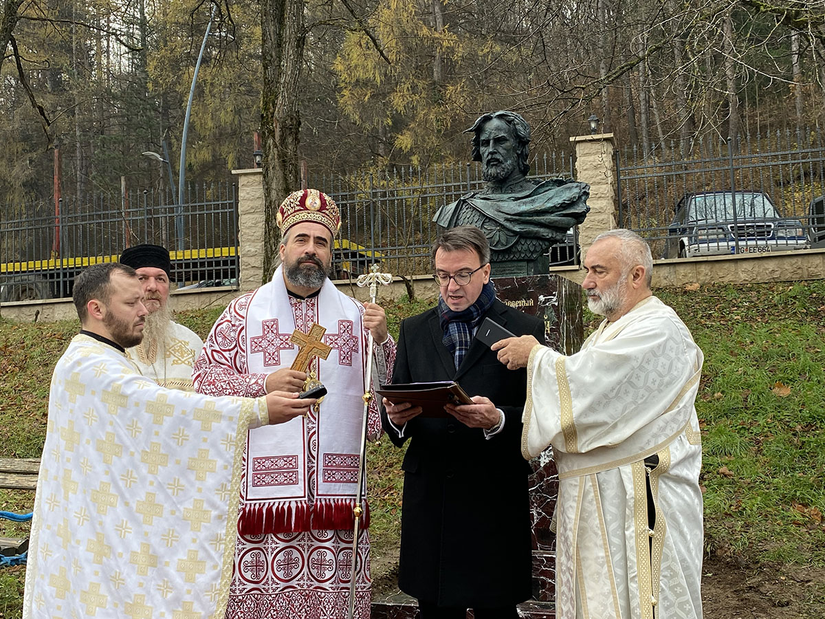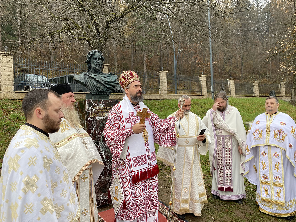 По одслуженој Литургији, Преосвећени Епископ је освештао новопостављени споменик Великом благовјерном кнезу Александру Невском.