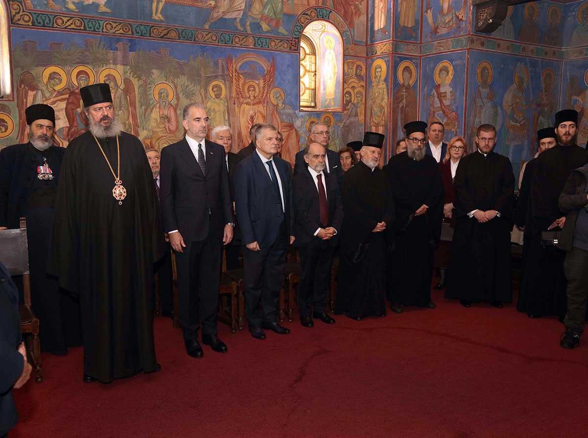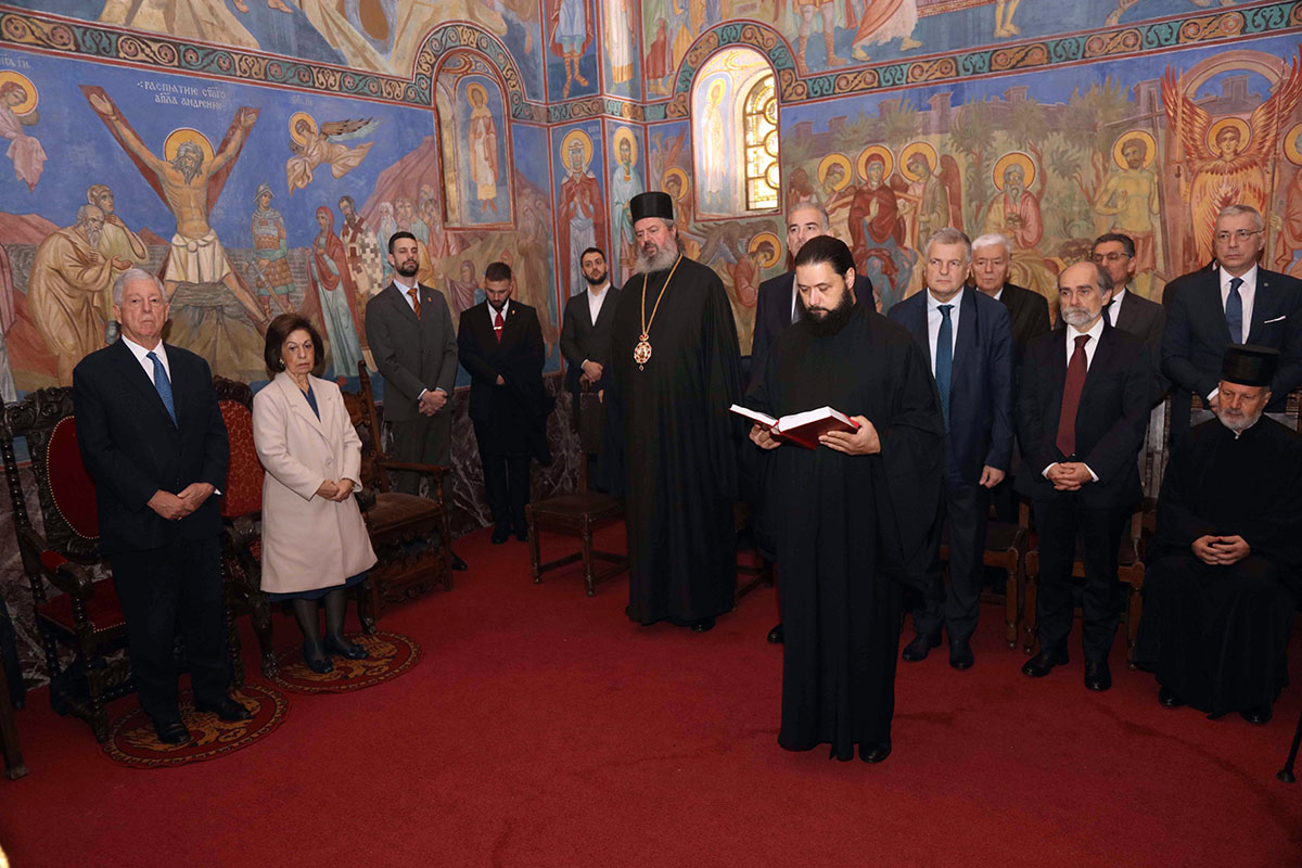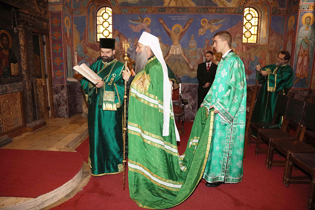 Његовој Светости Патријарху саслуживали су Преосвећени Епископ липљански г. Доситеј; архимандрит Никон; протојереј Ђорђе Стојисављевић, шеф Кабинета Патријарха српског; јереј Михаило Рапајић, старешина Дворске капеле Светог Андреја; протођакони Драган Радић и Радомир Врућинић. Његова Светост Патријарх честитао је славу престолонаследнику Александру бираним речима: