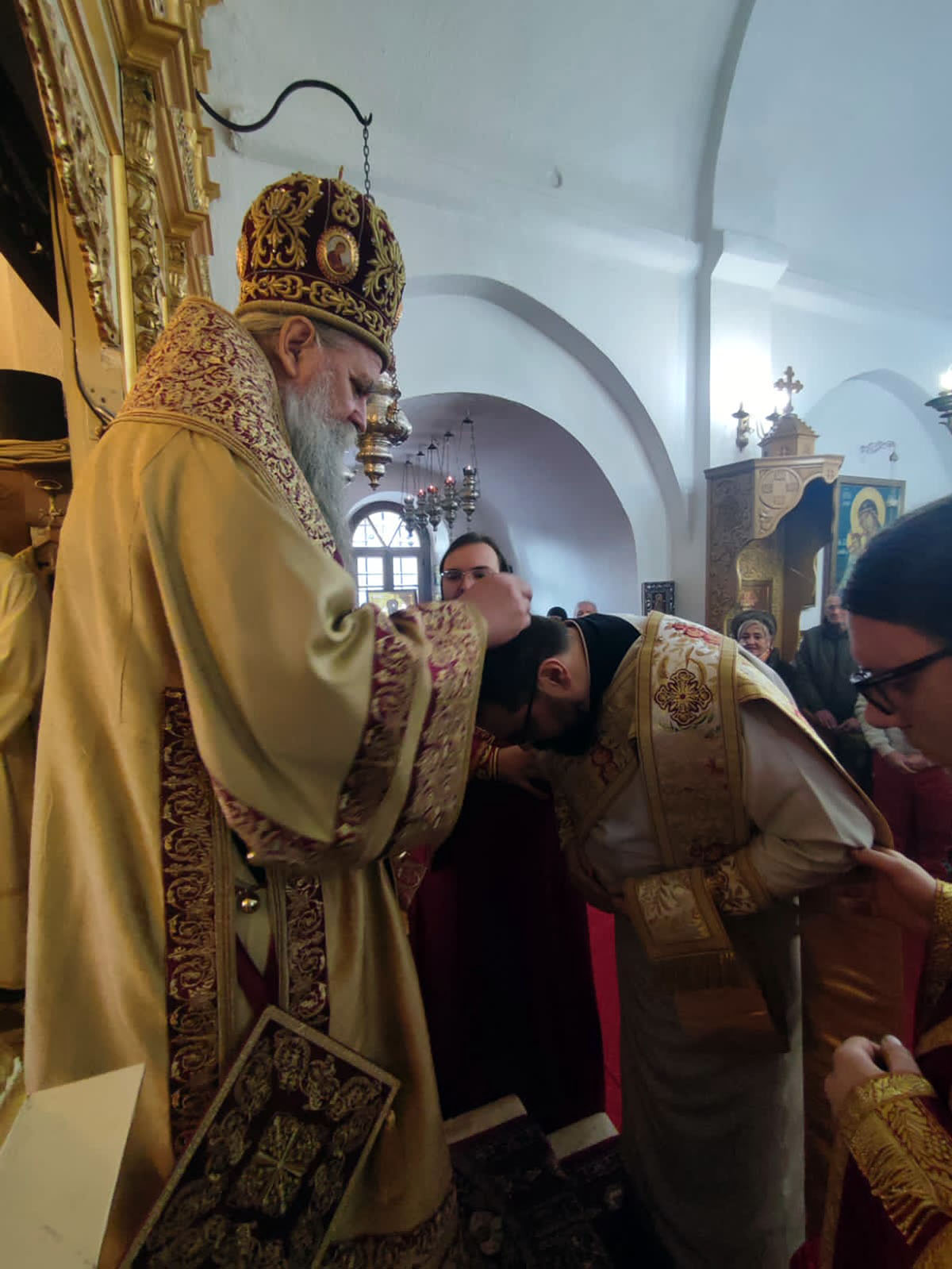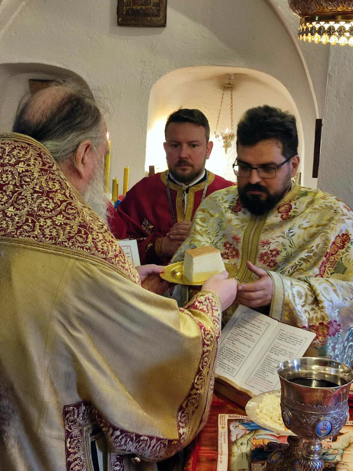 У току Литургије Владика је у презвитерски чин рукоположио протођакона Константина Дојића.