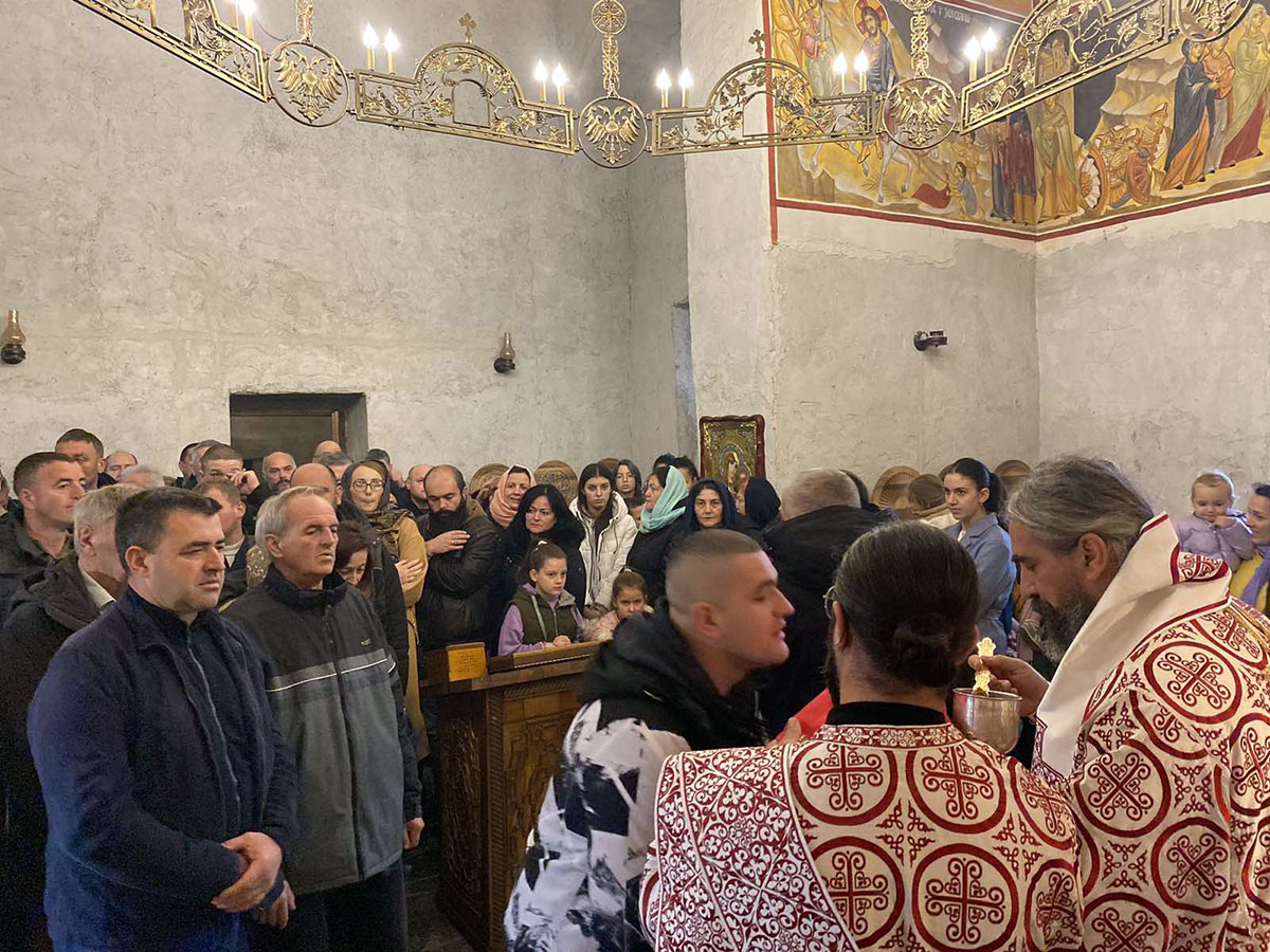 Епископу су саслуживали: протојереј-ставрофор Мираш Богавац, протојереј-ставрофор Драган Ристић, архијерејски намјесник берански, протојереј-ставрофор Дарко Пејић, архијерејски намјесник бјелопољски, јеромонах Андроник (Ракочевић), и архиђакон Јаков (Нинковић), уз молитвено учешће вјерног народа.