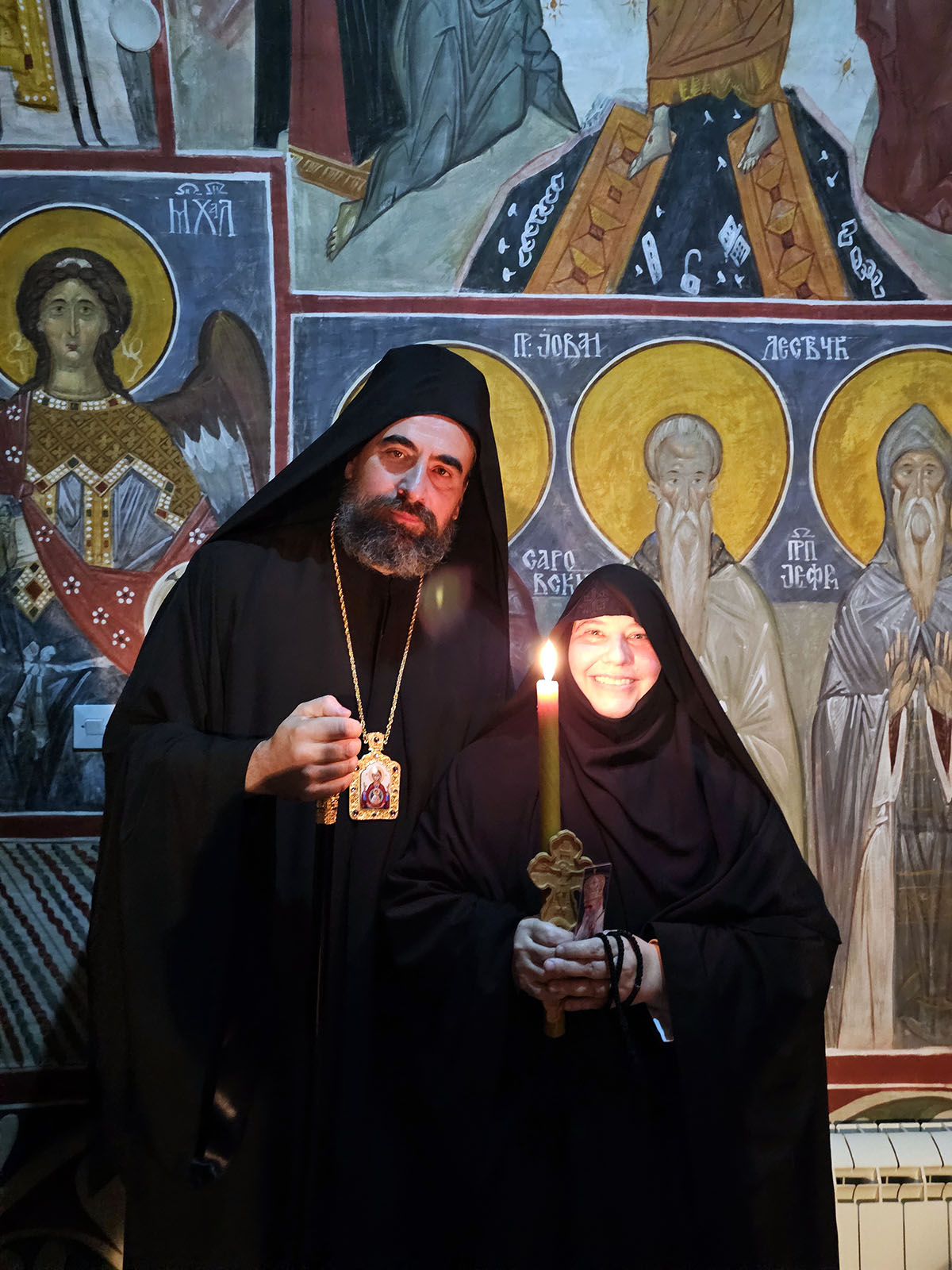 „Господ нека благослови сестру нашу Василију и утврди на путу њеног спасења, и све вас овдје који сте се сабрали да заједно учествујемо у овом дивном и благодатном чину њеног ангелског лика и монашког пострига, мати игуманији да да снаге да дивно, као и досад, мудро и дубоким смирењем и трпљењем руководи овим дивним сестринством, овом светом обитељи, а свим сестрама да носе бремена једни других и свих нас колико нас је“, поручио је Владика будимљанско-никшићки Г. Методије.