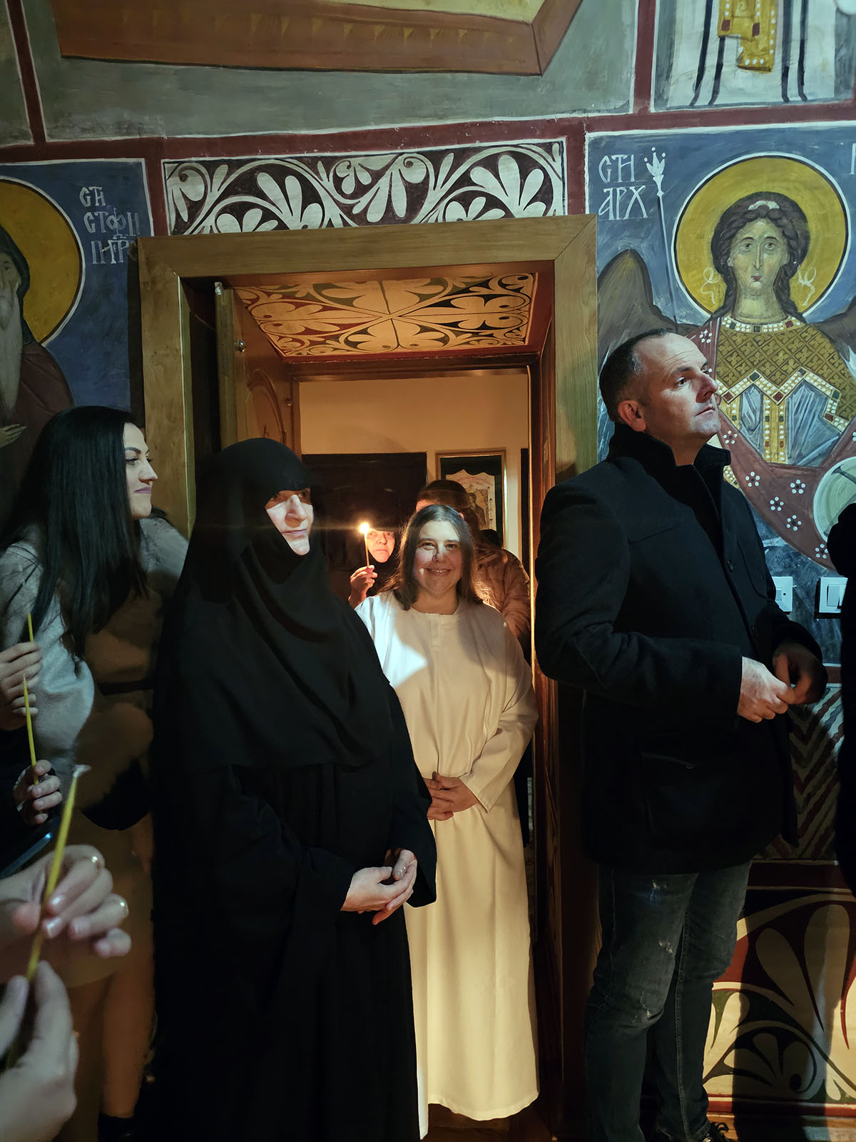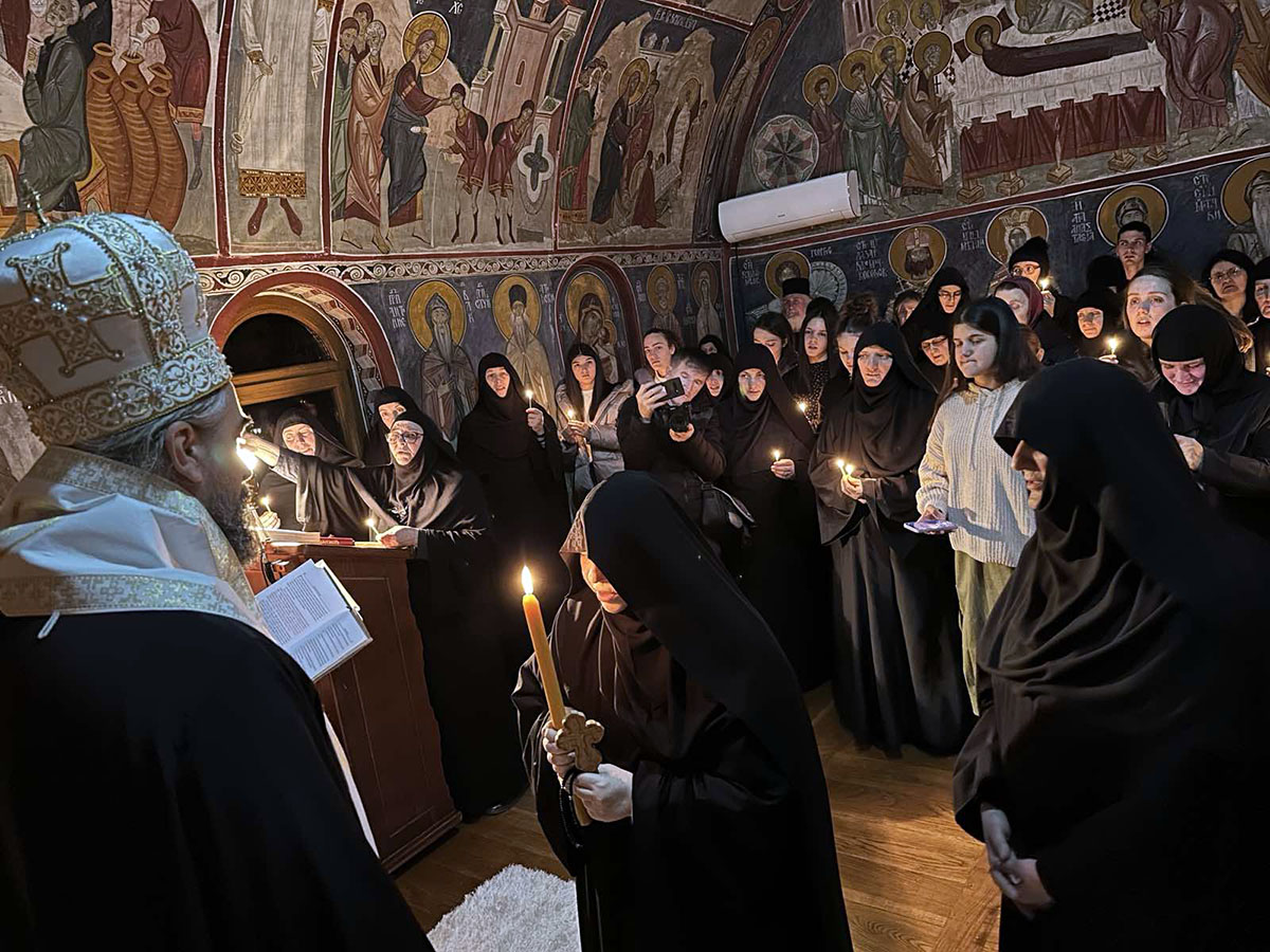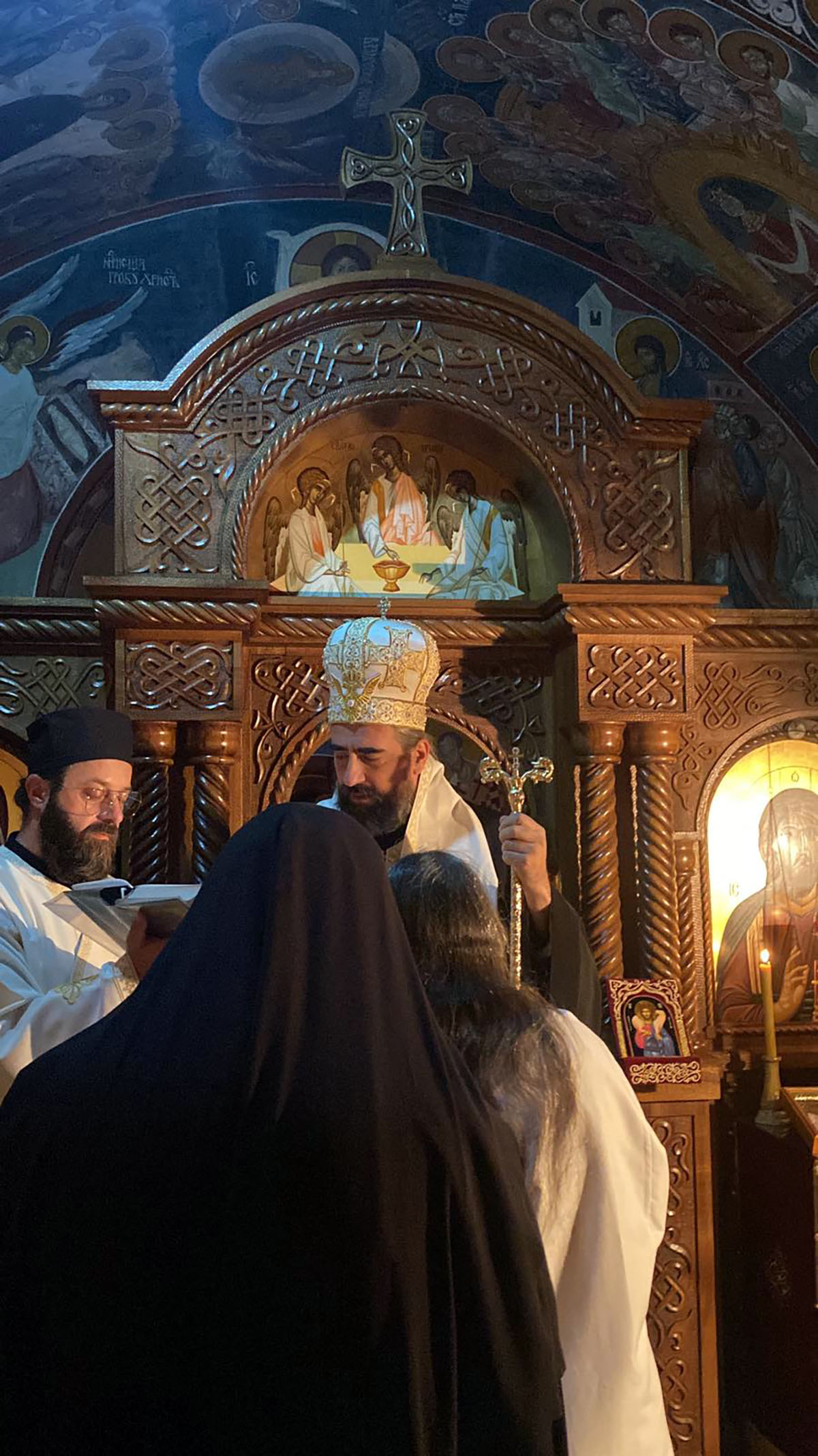 Монашењу је претходила вечерња служба, коју је служио архимандрит Арсеније (Самарџић), игуман манастира Косијерево.