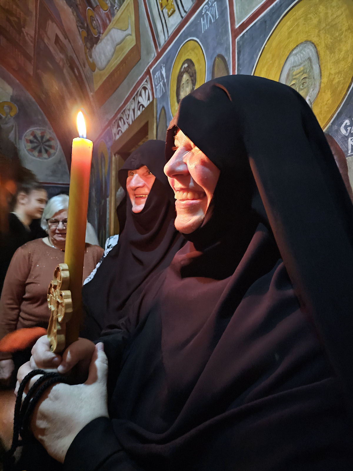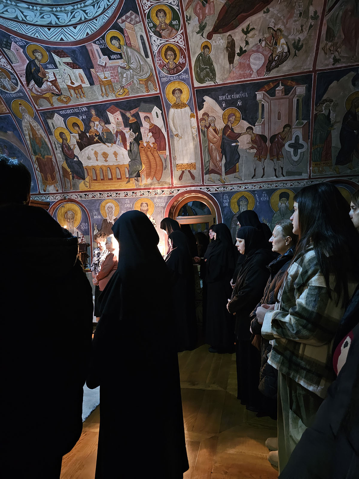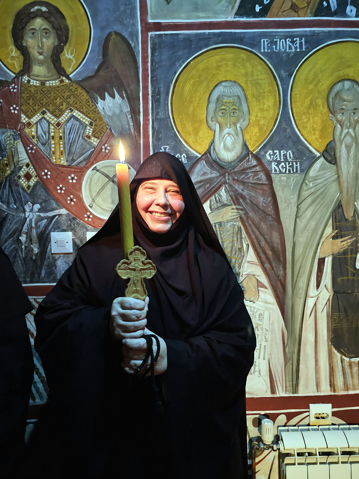 Монашењу је претходила вечерња служба, коју је служио архимандрит Арсеније (Самарџић), игуман манастира Косијерево.