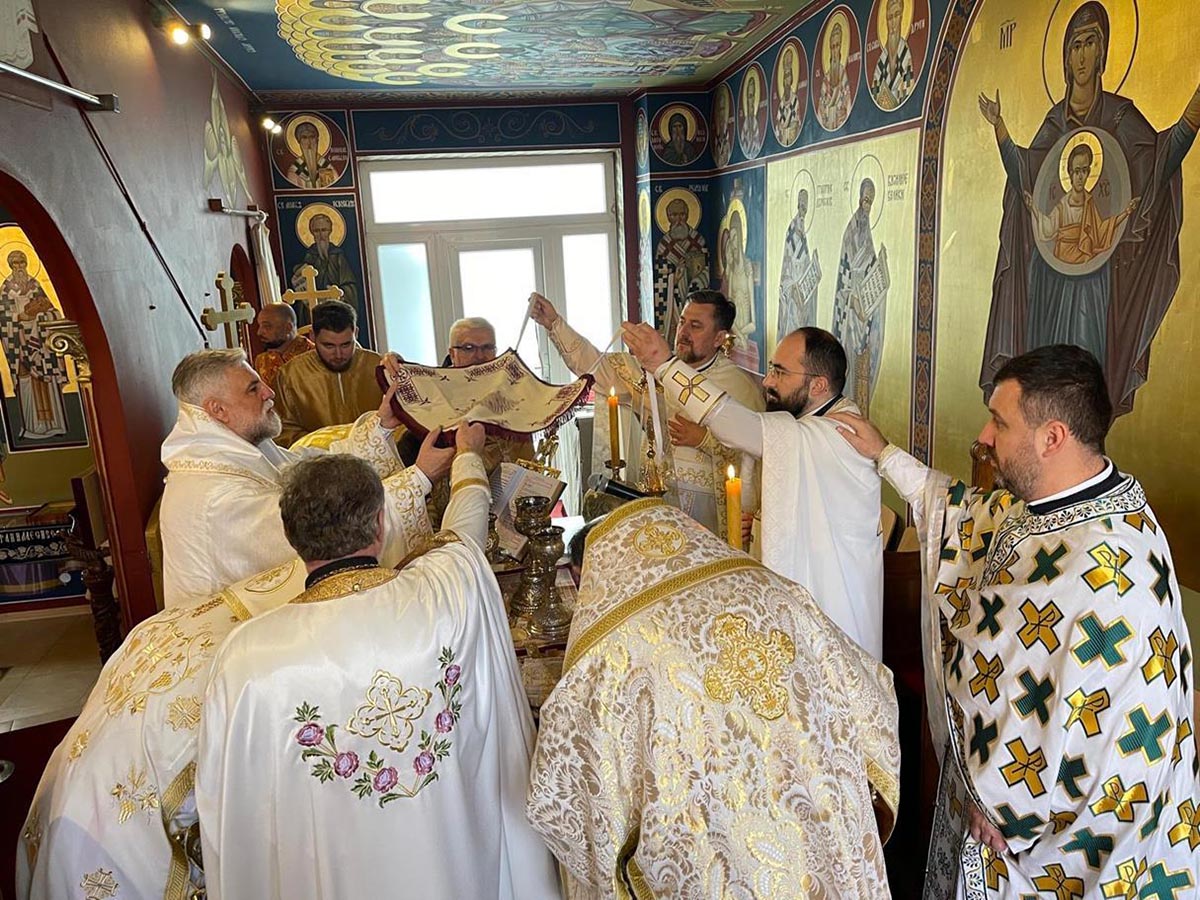 Саслуживали су преосвећена господа епископи париски и западноевропски Јустин, умировљени средњоевропски Константин и аријанзоски Вартоломеј (Цариградска Патријаршија), као и свештенство више епархија Српске Православне Цркве. После читања јеванђељског зачала присутнима се обратио епископ Јустин.