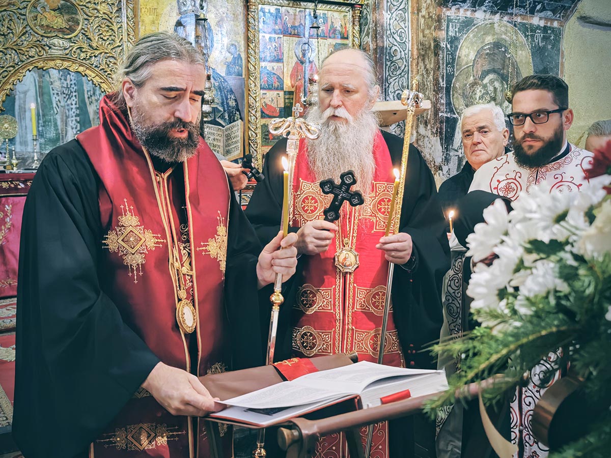 Истичући да је тешко набројати све његове заслуге за Цркву, Архиепископ цетињски је подсјетио на неке од њих: обнову манастира Куманице и древних светиња у Бијелом Пољу – Петрове цркве и Никољца, градњу нових цркава у околини Бијелога Поља…