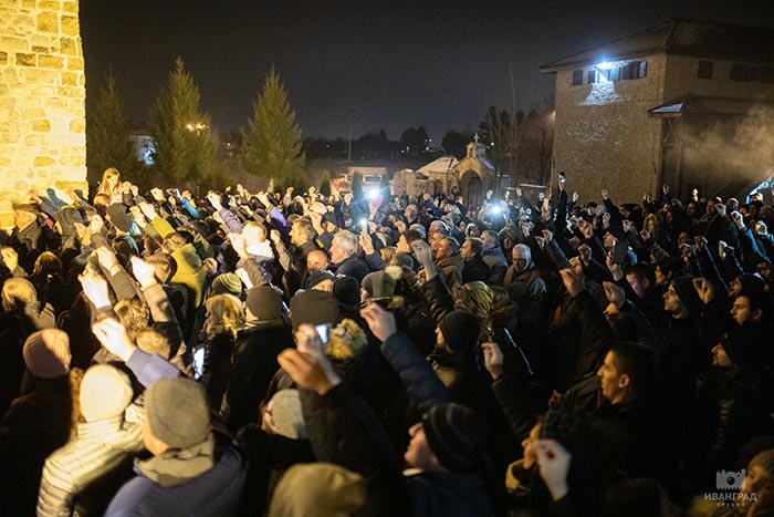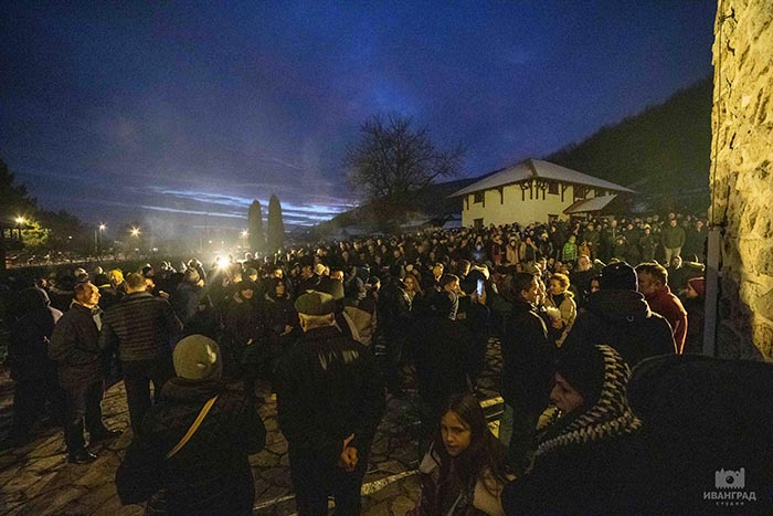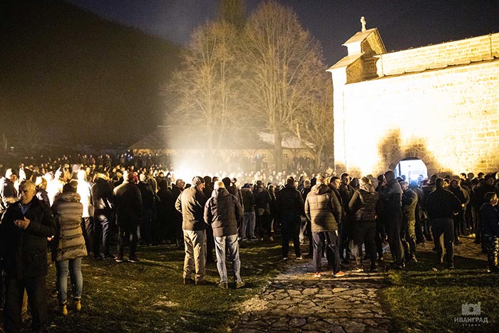 „Наш духовни отац, Свети Владика Јоаникије, који је са својим народом у свакој прилици и неприлици, мудро нас учи кад каже да бисмо се лако изборили са онима који су окренули мач свој ка Цркви Божјој да су то људи друге вјере, друге нације. Знамо ми од кога смо и од каквог кова, не би били ни први ни последњи који би залили темеље светих храмова својом крвљу. Васкрсења не бива без смрти, каже Његош, али, као што знамо, наша снага, наше најјаче оружје не почива у оружју од гвожђа, од метала. Наше оружје, и ових дана, и увијек, јесте снажна и сложна молитва, која се уздиже и у овој вишевјековној светињи Немањића и у свим храмовима широм наше свете Црне Горе. За нас је она света и биће увијек тако док је нас“, казао је отац Милош Цицмил.