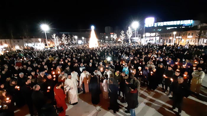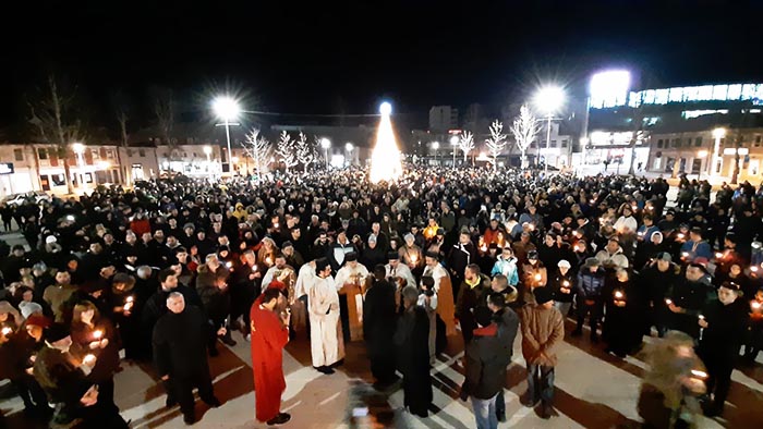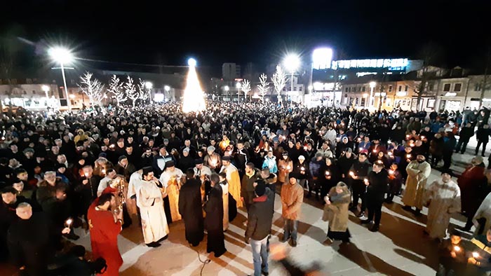 Молебан Пресветој Богородици, у Саборном храму Светог Василија Острошког у Никшићу, у уторак 31. децембра 2019, служило је више свештенослужитеља никшићког намјесништва. Вјерни народ је, као и претходних вечери, испунио никшићку Саборну цркву, а како је за вечерас била најављена и литија, велики број њих је био принуђен да остане испред Храма да би, потом, сви заједно, уз духовне пјесме, молитве и са иконама у рукама, пошли у молитвени ход кроз Никшић.