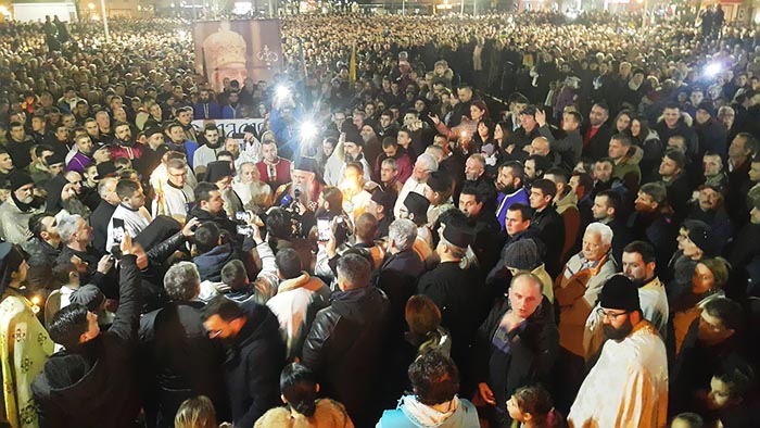Величанствени скуп Никшићана у одбрану Светиња благословио је надлежни Епископ Владика Јоаникије.