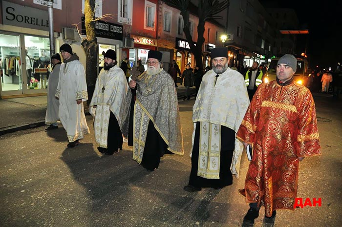 Упркос веома хладном и вјетровитом времену, вјерни народ, сабран у крсном ходу, предвођен свештенством и монаштвом Епархије и Митрополије црногорско-приморске, прошао је улицама Никшића, уз молитву и духовне пјесме, са иконама и црквеним барјацима до Трга „Слободе“.