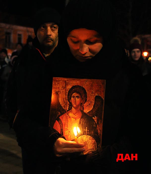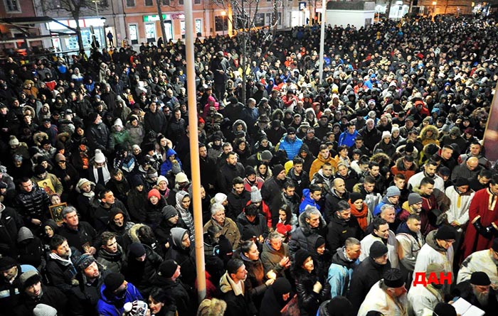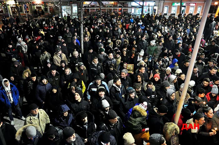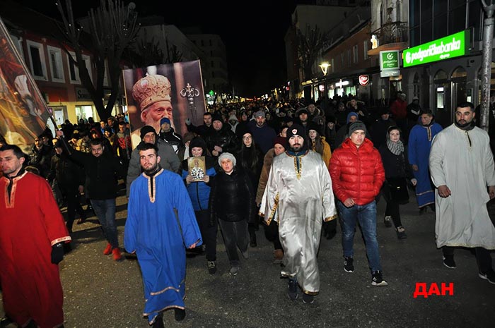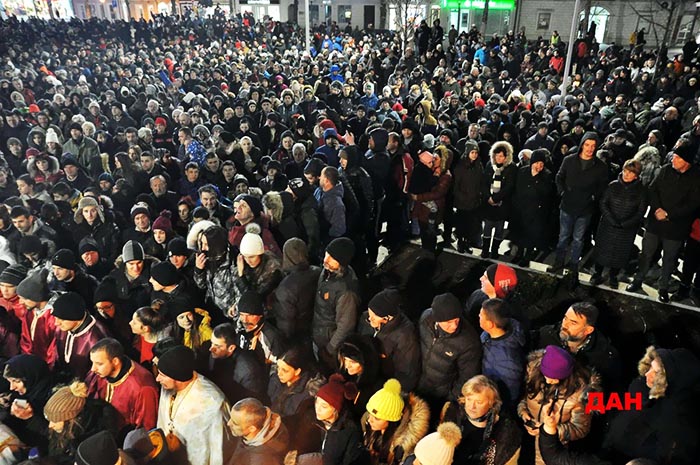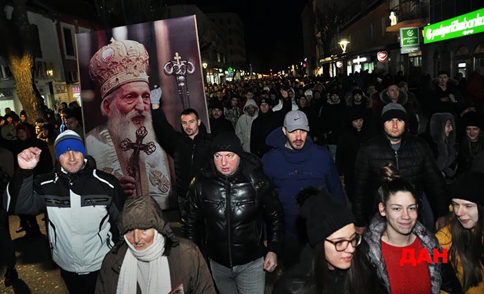 Након Молебана Пресветој Богородици, који је у четвртак 6. фебруара 2020. служен у Саборном храму Светог Василија Острошког у Никшићу, литија вјерног народа прошла је улицама града, исказујући на миран, достојанствен и хришћански начин, неслагање са неуставним и дискриминаторским Законом о слободи вјероисповјести у Црној Гори.