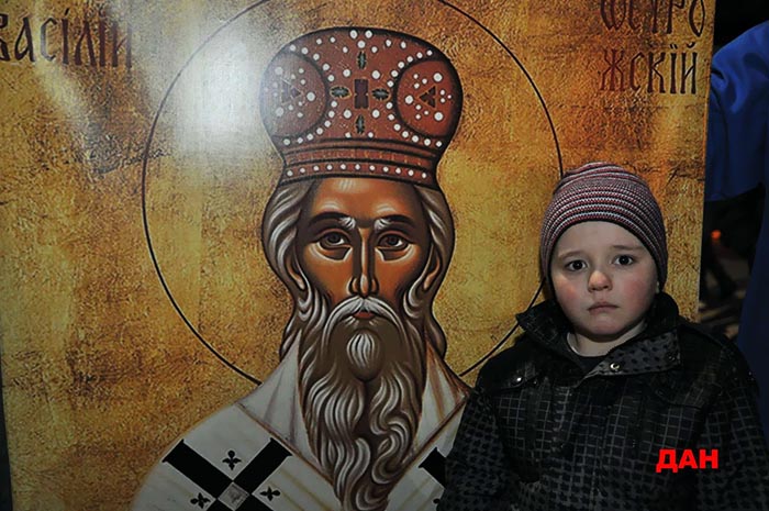 „Желим да вам пренесем благослов од ћивота Светог Петра Цетињског Чудотоворца, који се молио пред ћивотом Светог Василија, који је клечао за свој народ у онај вакат, а сигурно да се данас обојица пред Престолом Небеским моле се за све нас, за читаву Црну Гору и све људе добре воље широм свијета. Такође, желим да пренесем поздраве и благослове Преосвећеном Епископу Јоаникију и вама од Високопреосвећеног Митрополита црногорско-приморског Амфилохија који, ових дана, борави на свештеној и Светој Гори Атонској, гдје је отишао да и он клекне пред оним светињама и да се надахне оне најсветије молитве из врта Мајке Божје, да би Бог дао мир у Црној Гори, у цијелом свијету и љубав у срцима свих народа широм шара небеског“, навео је о. Обрен.