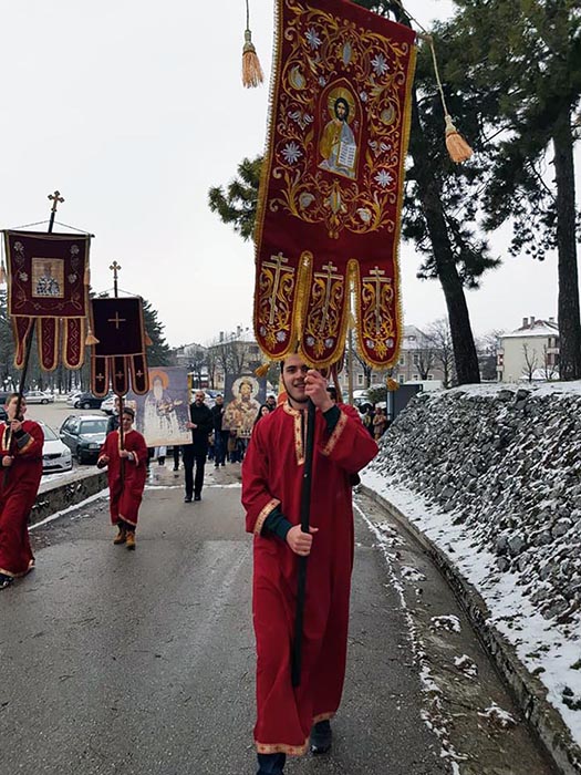 Празнична Литија свештенства и вјерног народа, међу којима је било много дјеце, носећи свете иконе, опходила је Саборни храм, симболизујући торжествену побједу Православља. Свечана Литија свештенства и вјерног народа прошла је Тргом Шака Петровића и назад ка никшићкој Саборној цркви.