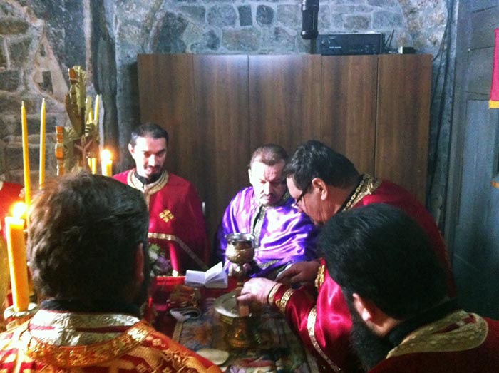 Литургијом је началствовао протојереј Дарко Пејић, а њему су саслуживали протојереји-ставрофори Мираш Богавац и Боро Врховац, протојереј Зоран Бубања, јереји Александар Крговић и Данило Дамјановић, Синиша Јанковић, Милан Станишић, Никола Скопљак и јеромонах Николај Стаматовић, игуман манастира Златеш.