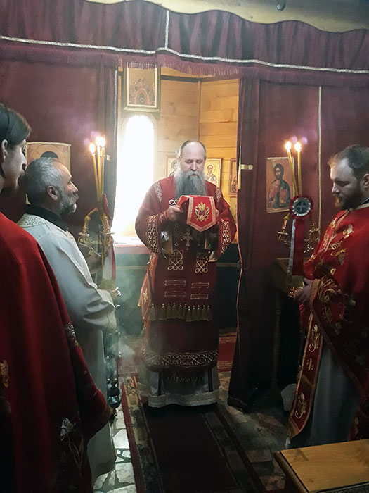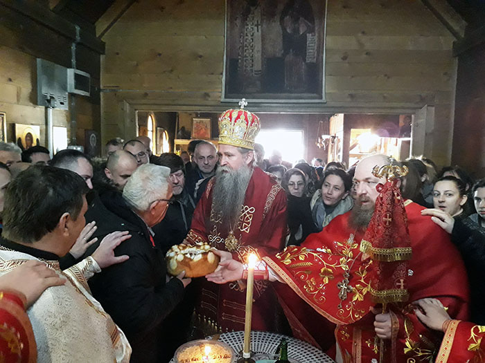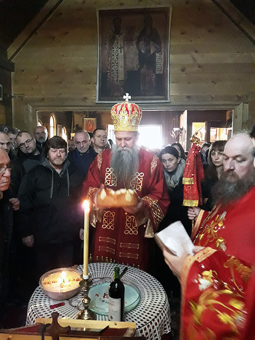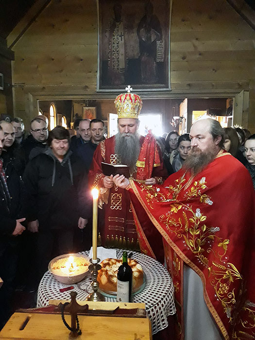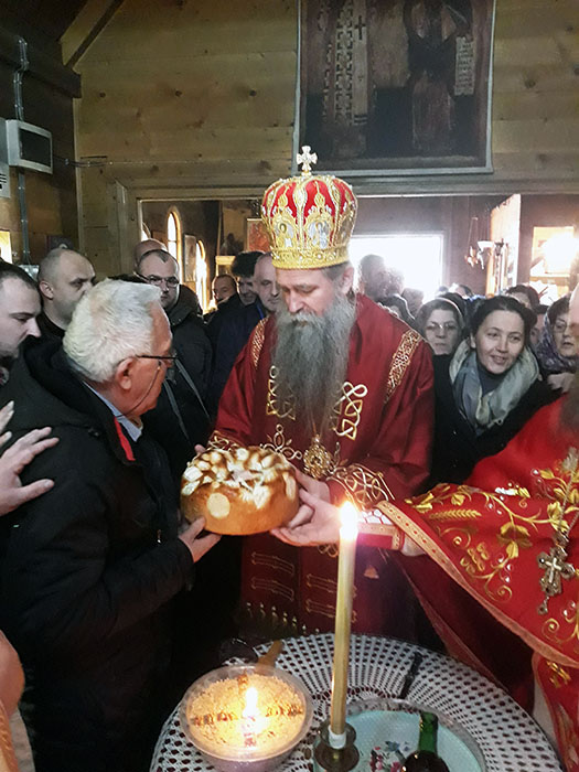 Освештан је и преломљен славски колач у славу Светог Симеона Мироточивог. Домаћин славља био је Маринко Рмуш који је са својом породицом, свештенством и вјерним народом припремио трпезу братске љубави. Дио колача преузео је Веселин Вуканић, домаћин славља за наредну годину, а свима је на љубави и труду заблагодарио Епископ Јоаникије.