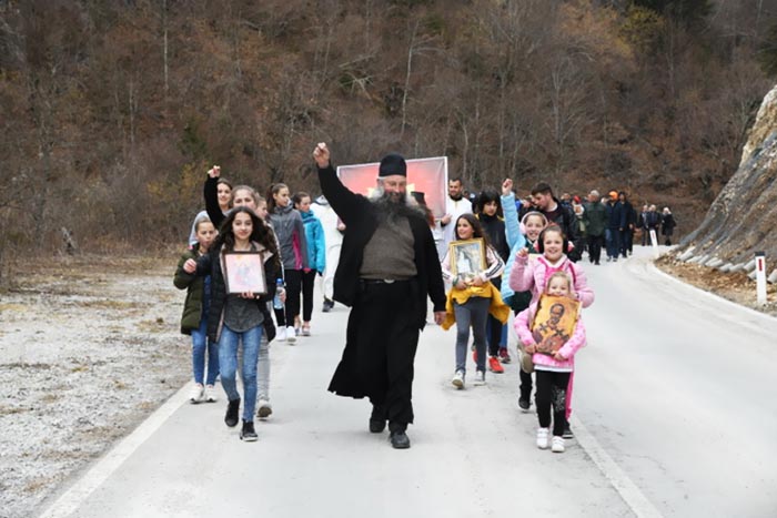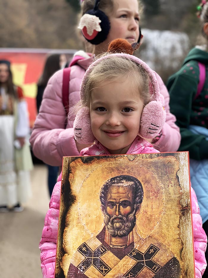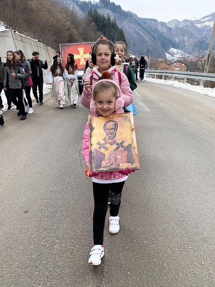 Кристина је, иако има, тек, нешто више четири године, учесник литије која, у дужини од 15 километара, иде од храма Светог пророка Илије у Лубницама до манастира Ђурђеви Ступови. Овај мали ходочасник, препјешачио је, већ, трећи пут, исту литију што је и за одраслу особу подвиг вриједан пажње. Уз њу је икона Светог Николе, који је крсна слава њене породице.