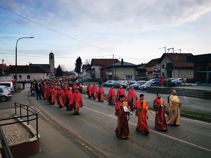 У Цркви Успења Пресвете Богородице у Модричи синоћ је служен молебан, а потом је у литији градским улицама прошло око 4.000 људи, који су на овај начин подржали браћу у Црној Гори у одбрани светиња Српске православне цркве /СПЦ/.