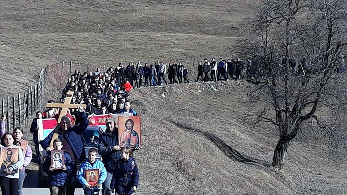Мирну, достојанствену свенародну литију, у којој су пјеване црквене пјесме, узношене молитве, ношене иконе и транспарент: „Пут-истина-живот-љубав-мир-слога“, предводили су јеромонах Сава (Вукајловић), сабрат манастира Ђурђеви Ступови, јеромонах Георгије (Рајаковић), игуман манастира Брезојевица и јереј Ненад Бубања.