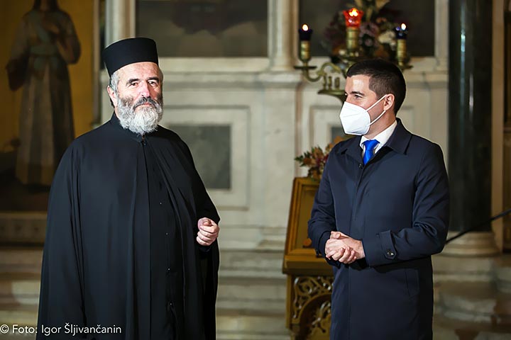 „Веома нам је драго што предсједник Скупштине Црне Горе г-дин Алекса Бечић, приликом своје прве званичне посјете Општини Никшић, посјећује храм Светог Василија Острошког, храм који је симбол овог града, а који је прошле године прославио 120 година свог освећења и постојања, а ове године имамо још један велики јубилеј - 350 година од престављења Светог Василија Острошког. Надамо се и молимо се Богу да ћемо моћи да га прославимо достојно и да ће здравствене мјере, у току ове године бити боље, те да ћемо моћи да се окупљамо и славимо свога Светитеља“, рекао је свештеник Кнежевић, изразивши захвалност г-дину Бечићу што је био са народом Никшића у тешким тренуцима када су Преосвећени Епископ Јоаникије и свештенство никшићког Саборног храма били у заточеништву.