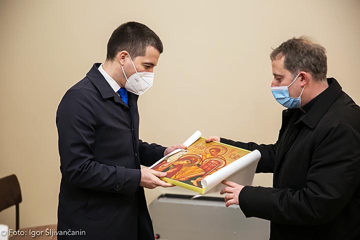О. Остоја је уручио Бечићу на поклон монографију Саборне цркве у Никшићу.