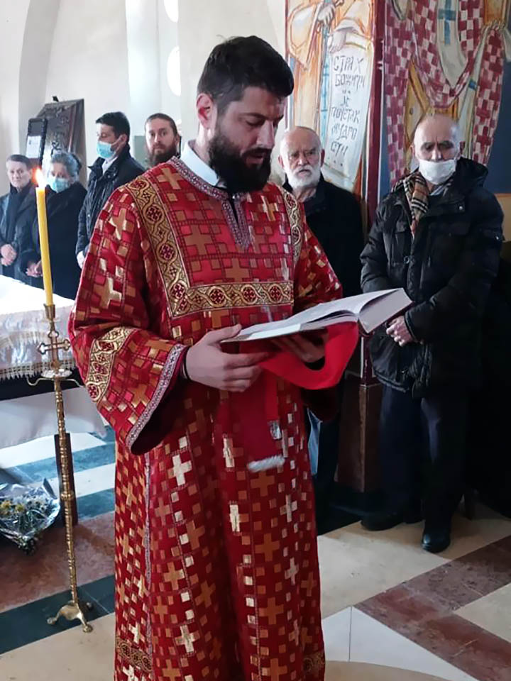 Свету заупокојену литургију са опијелом у цркви Светог Пантелејмона и Светог Климента Охридског служио је са свештенством Његово преосвештенство Епископ будимљанско-никшићки и администратор Митрополије црногорско-приморске г. Јоаникије.