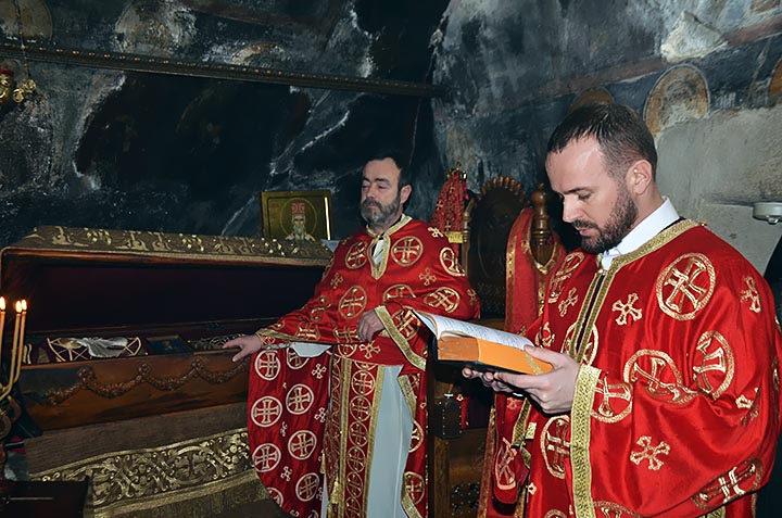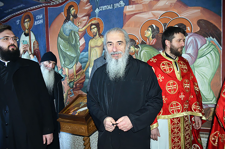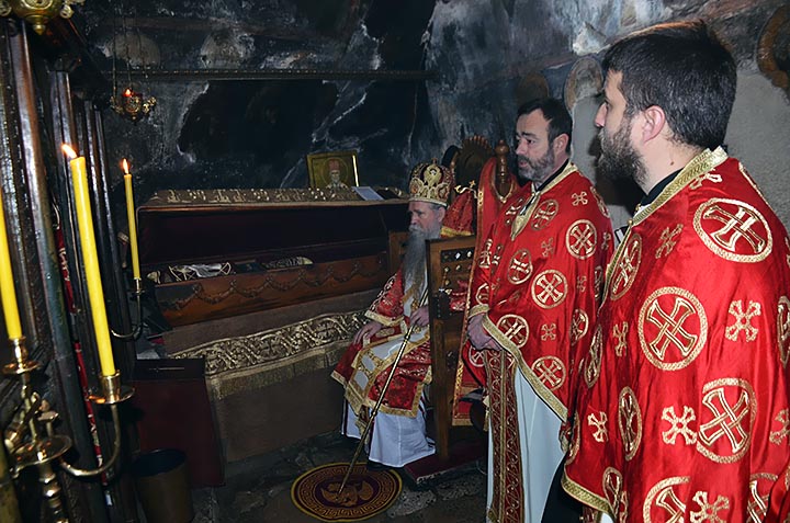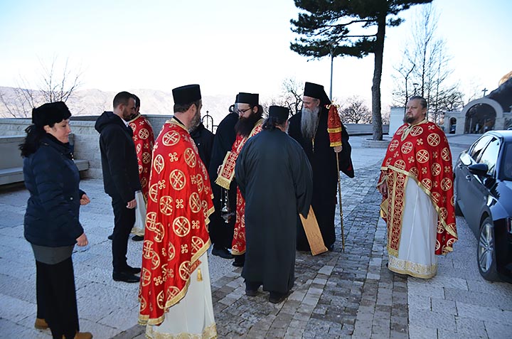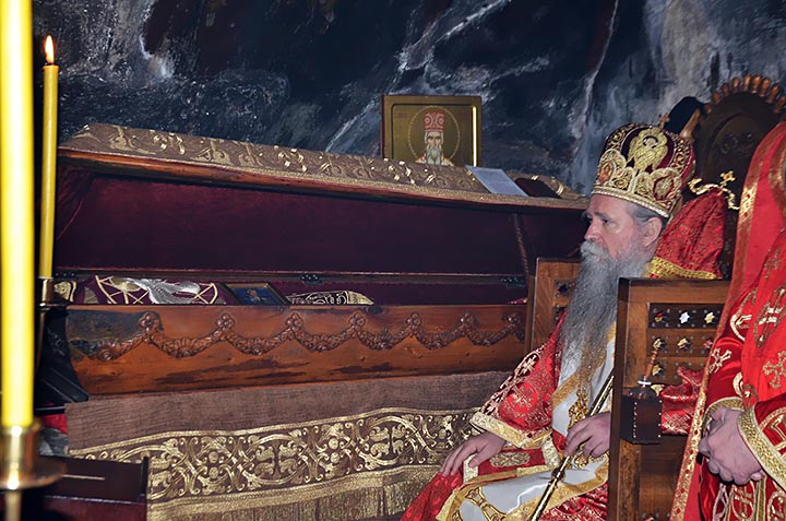 Владика је казао да је ова служба код моштију Светог Василија Острошког посебна, јер на њој после три мјесеца први помињемо име новог Патријарха српског Порфирија, изабраног прије неколико дана.