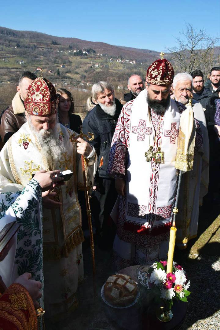 „Преосвештени и драги Владико Јоване, брате и саслужитељу, добродошао у ову древну земљу гдје се родио онај кога данас помињемо и прослављамо, Свети Симеон Мироточиви жупан Стеван Немања, и који нам доносиш благослове древне славонске Епархије и пакрачке, а поготово молитве, благослове и покровитељство јасеновачких мученика, којима се молиш и клечиш за цјелокупни род наш. Сретан свима данашњи празник и данашње сабрање, на овом дивном мјесту, гдје је онај који се родио на ушћу двије ријеке, Рибнице и Мораче, устројио ову дивну светињу, овај храм Пресветој Богородици, на ушћу Бистрице и ријеке Лима“, казао је Његово Преосвештенство.