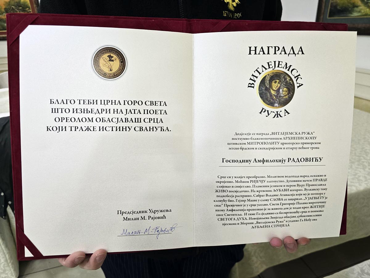 одијељене награде „Витлејемска ружа“ – добитник постхумно блаженопочивши Митрополит црногорско-приморски г. Амфилохије (Радовић), међу добитницима и Епископ будимљанско-никшићки г. Методије (Остојић), професор Александар Вујовић…