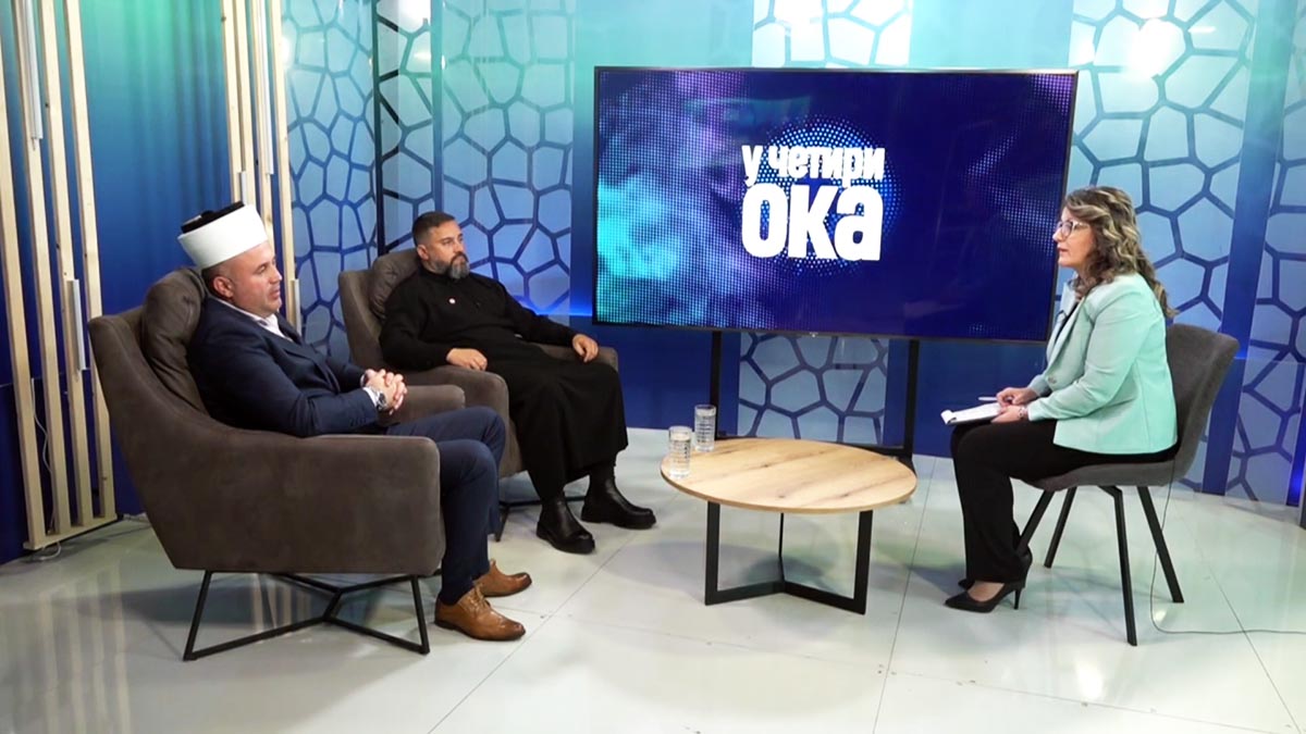 У емисији "У четири ока" на радио телевизији Херцег Нови гостовали протојереј Миајло Бацковић, секретар Епископа будимљанско-никшићког Г. Методија и Мехо еф. Мартиновић, главни имам за Боку и Будву.