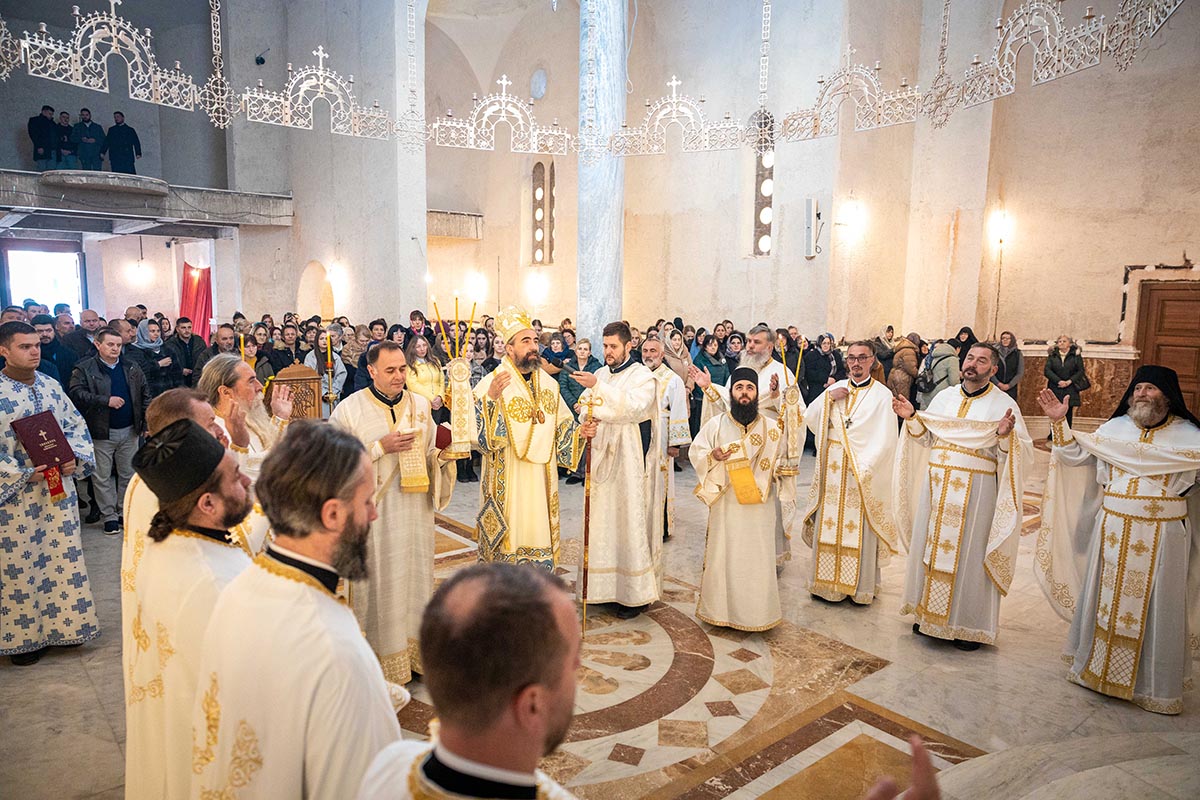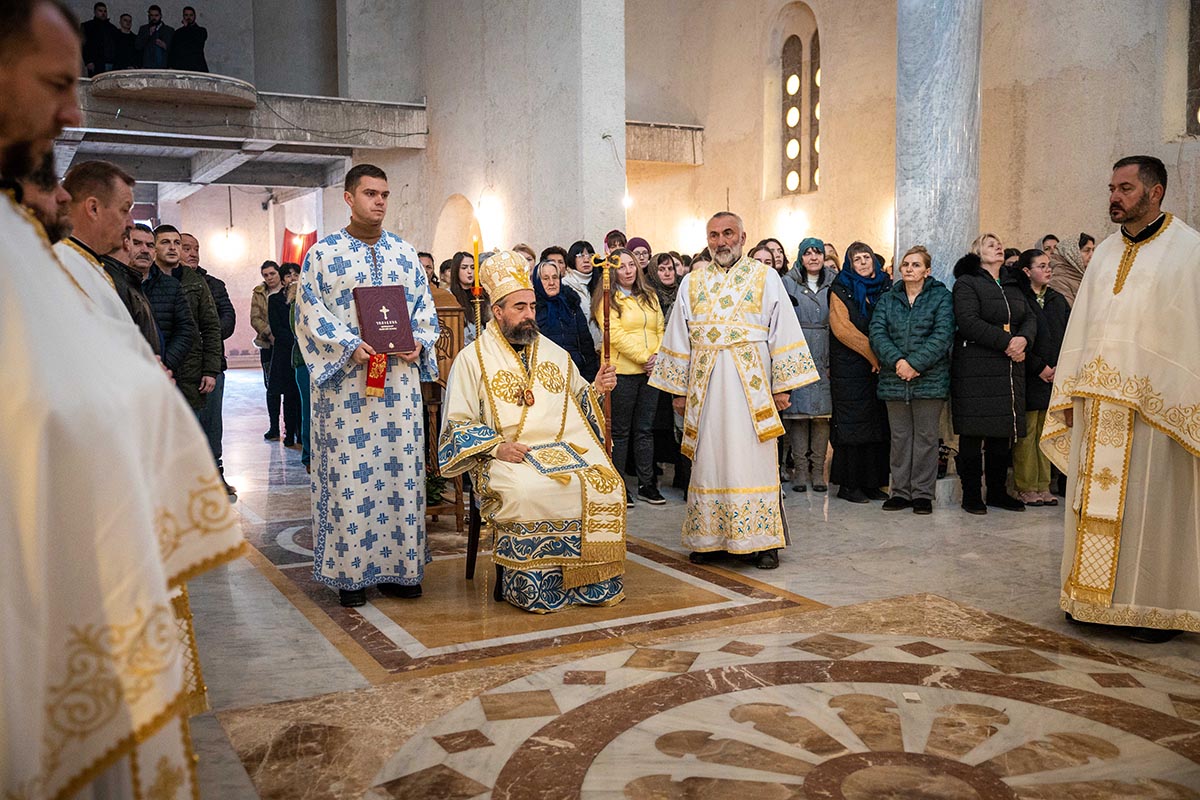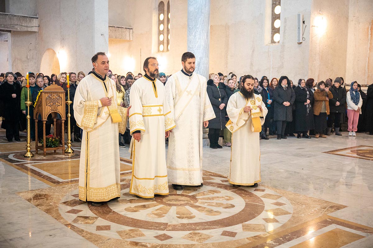 „Имали смо још један велики благослов и радост данас на светој Литургији да се рукоположи за ђакона један врли човјек хришћанин Небојша и да овдје настави да служи у овом храму и граду и овом српском народу на спасење цјелокупне наше литургијске заједнице, а и на његово спасење. И као што је у Јеванђељу данашњем речено, и као што је Свети Симеон то својим животом потврдио, и као што је у молитви речено на рукоположењу за ђакона брату Небојши, каже Господ на сва та три мјеста: Ко хоће за мном да иде, нека узме крст свој и нека за мном иде, и ко мисли да ће живот свој сачувати тај ће га изгубити, а ко живот свој положи мене ради и Јеванђеља ради тај ће га задобити и душу своју спасити, јер шта човјеку вриједи ако цио свијет и све плате, имовину, богатства овог свијета задобије, а души својој науди“, поучавао је Преосвећени Епископ.