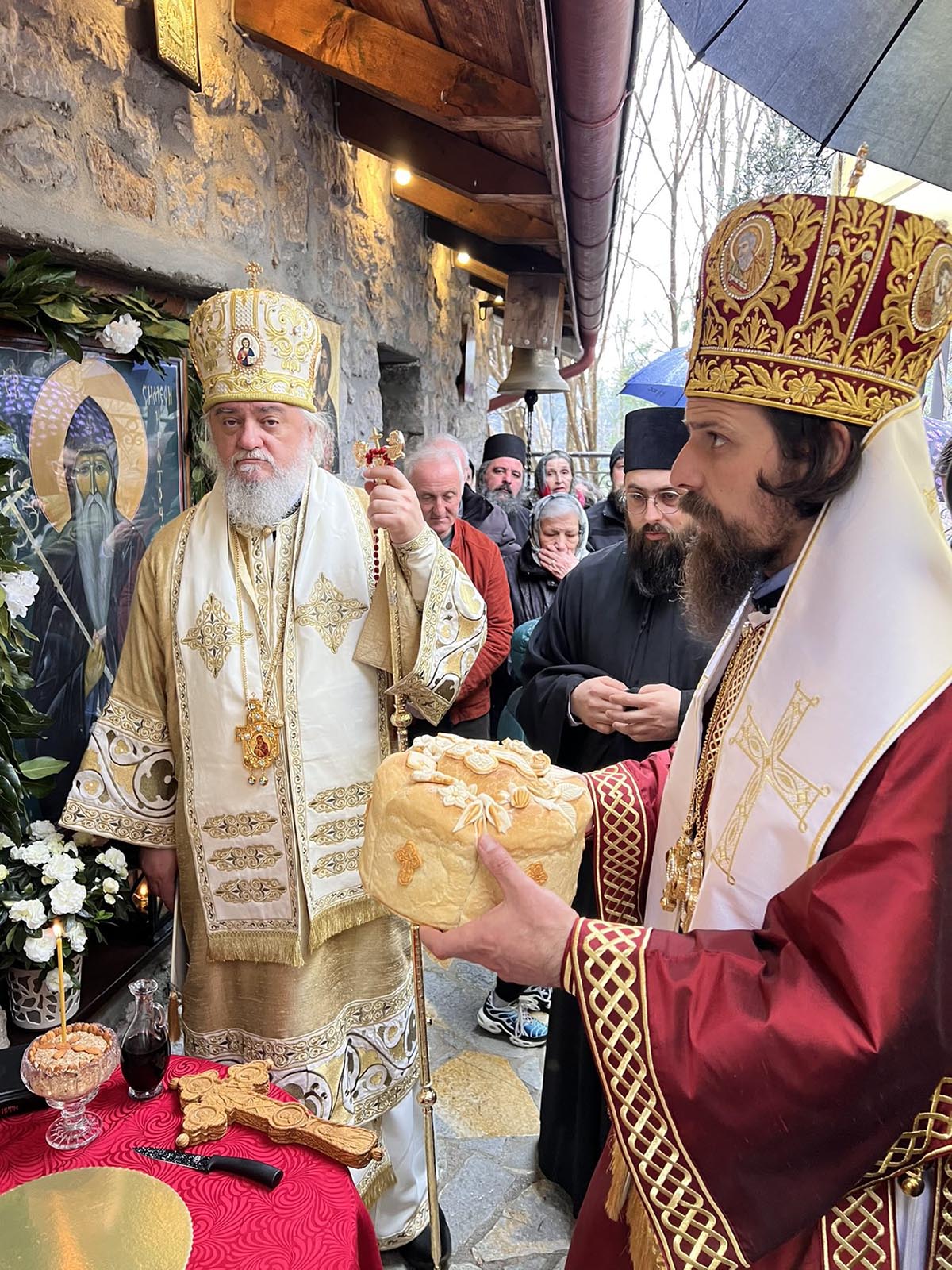 На крају Свете литургије благосиљани су славски дарови и преломљен колач у славу Божију, а у част Светог Симеона Мироточивог.