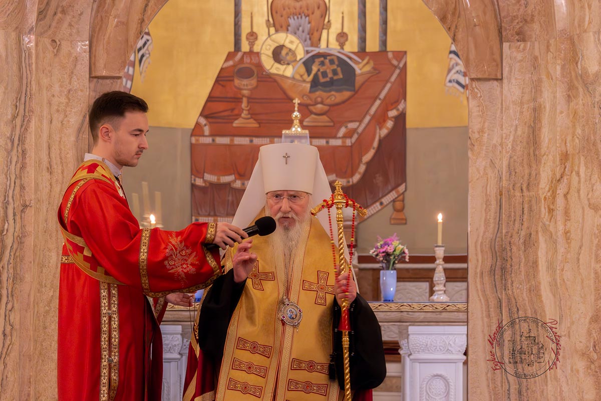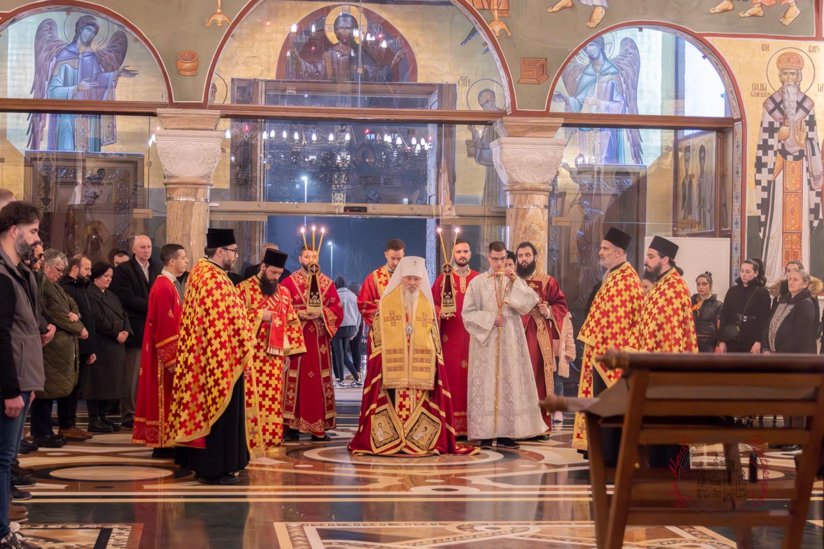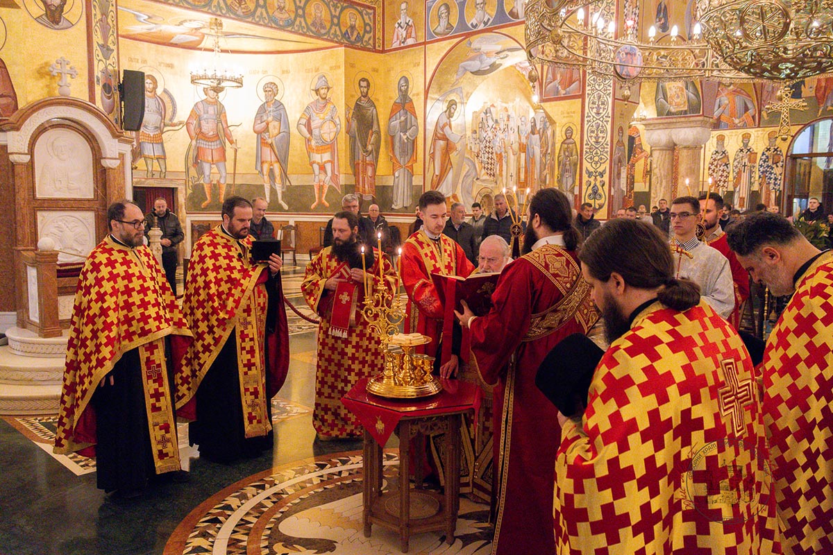 Вечерњим богослужењем у Саборном храму Христовог Васкрсења началствовао је Његово високопреосвештенство Митрополит берлински и њемачки Руске заграничне цркве г. Марко, у молитвеном присуству високопреосвећене господе Архиепископа цетињског Митрополита црногорско–приморског Јоаникија и Архиепископа и Митрополита милешевског Атанасија, преосвећене господе епископа пакрачко-славонског Јована и буеносајреског и јужно-централноамеричког Кирила и вјерног народа.