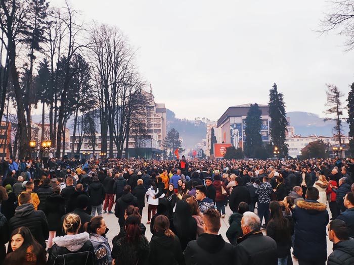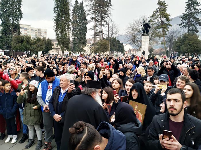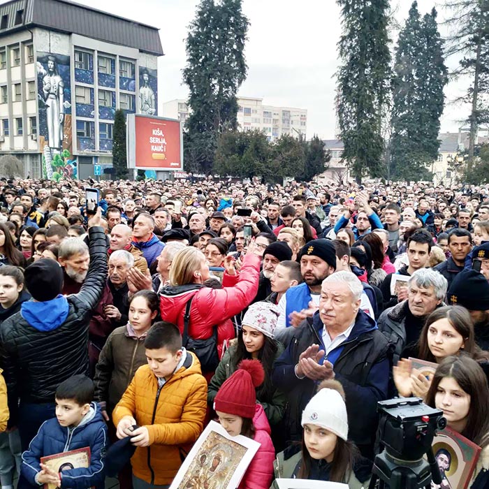 Владика Јоаникије је, обраћајући се на градском тргу, казао да се молимо Богу, сабирамо око престола Божјег, обједињујемо и оснажујемо силом Божијем.