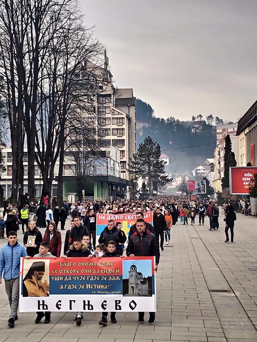 „Кријепимо се нашим заједништвом и међусобним миром и љубављу у овим тешким данима, данима тешких искушења, када смо изложени дискриминацији и удару на нашу вјеру, на православље, на наше светиње. Онај ко удара на светиње, удара на част и образ, на прошлост, садашњост и на будућност и хоће да збрише и вјеру, и народ и памћење. Зли наум је био и ми смо се супроставили дискриминацији када више није било никаквог средства и начина да се супроставимо преко званичних институција, ми смо морали да се супростaвимо на овај начин и да сазовемо народну скупштину“.